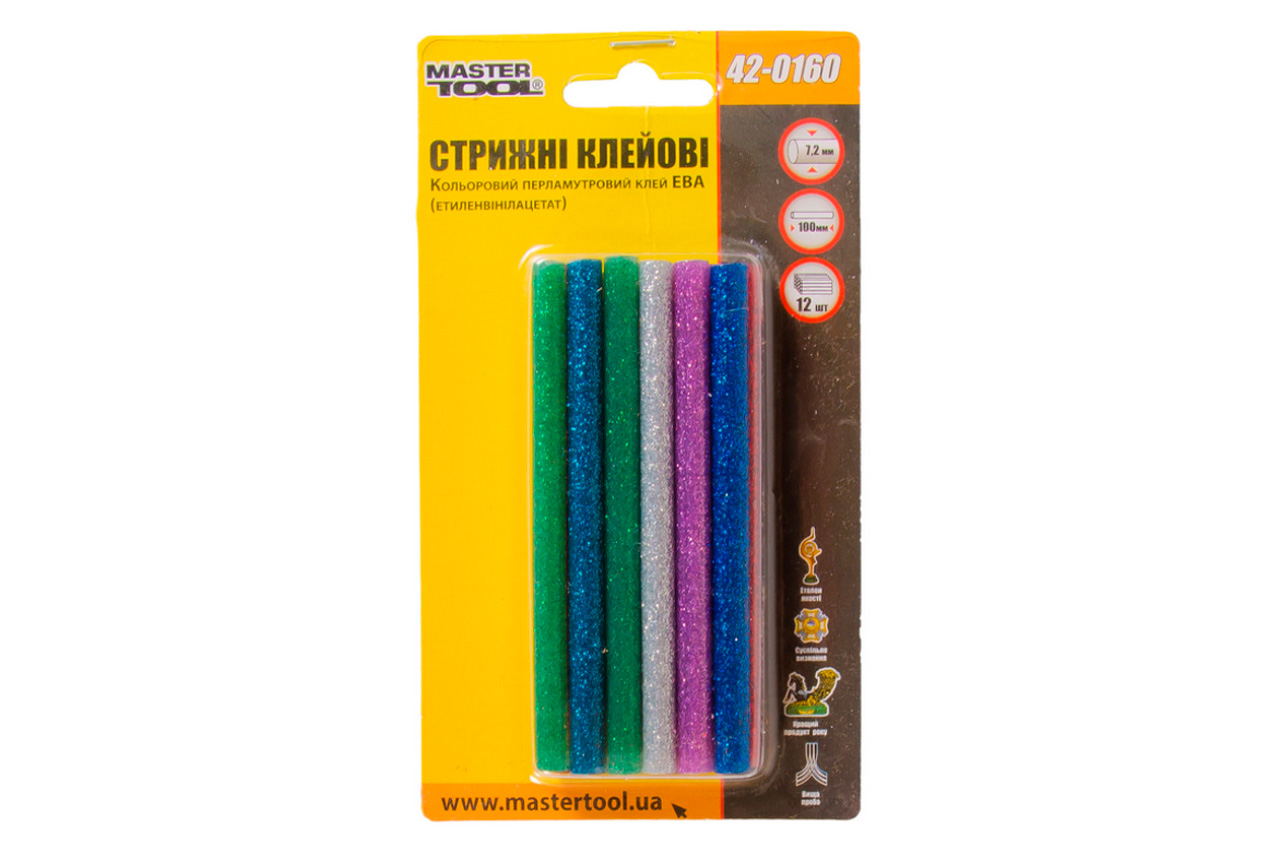 Клеевые стержни Mastertool - 7,2 x 100 мм цветные перламутровые (12 шт.)