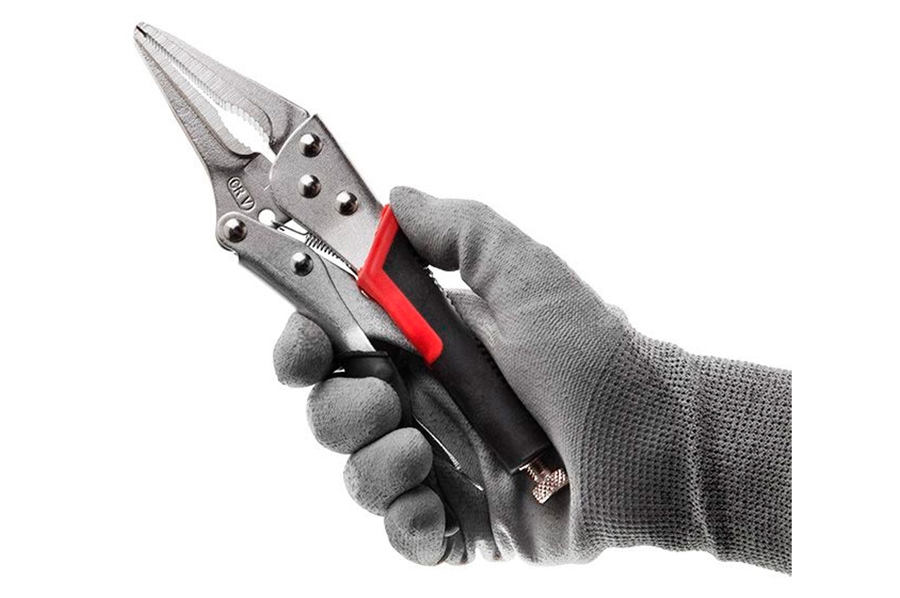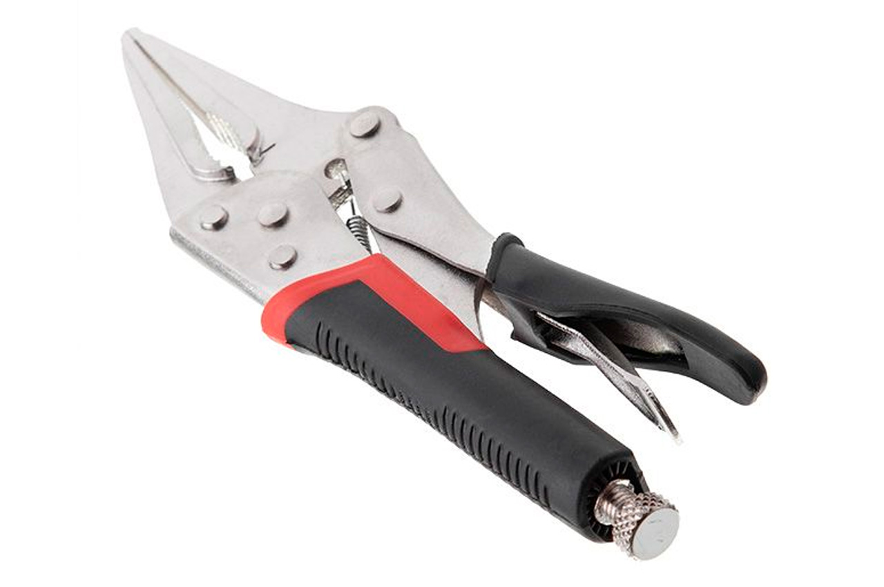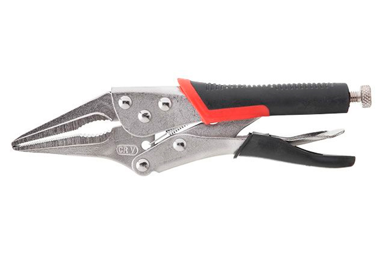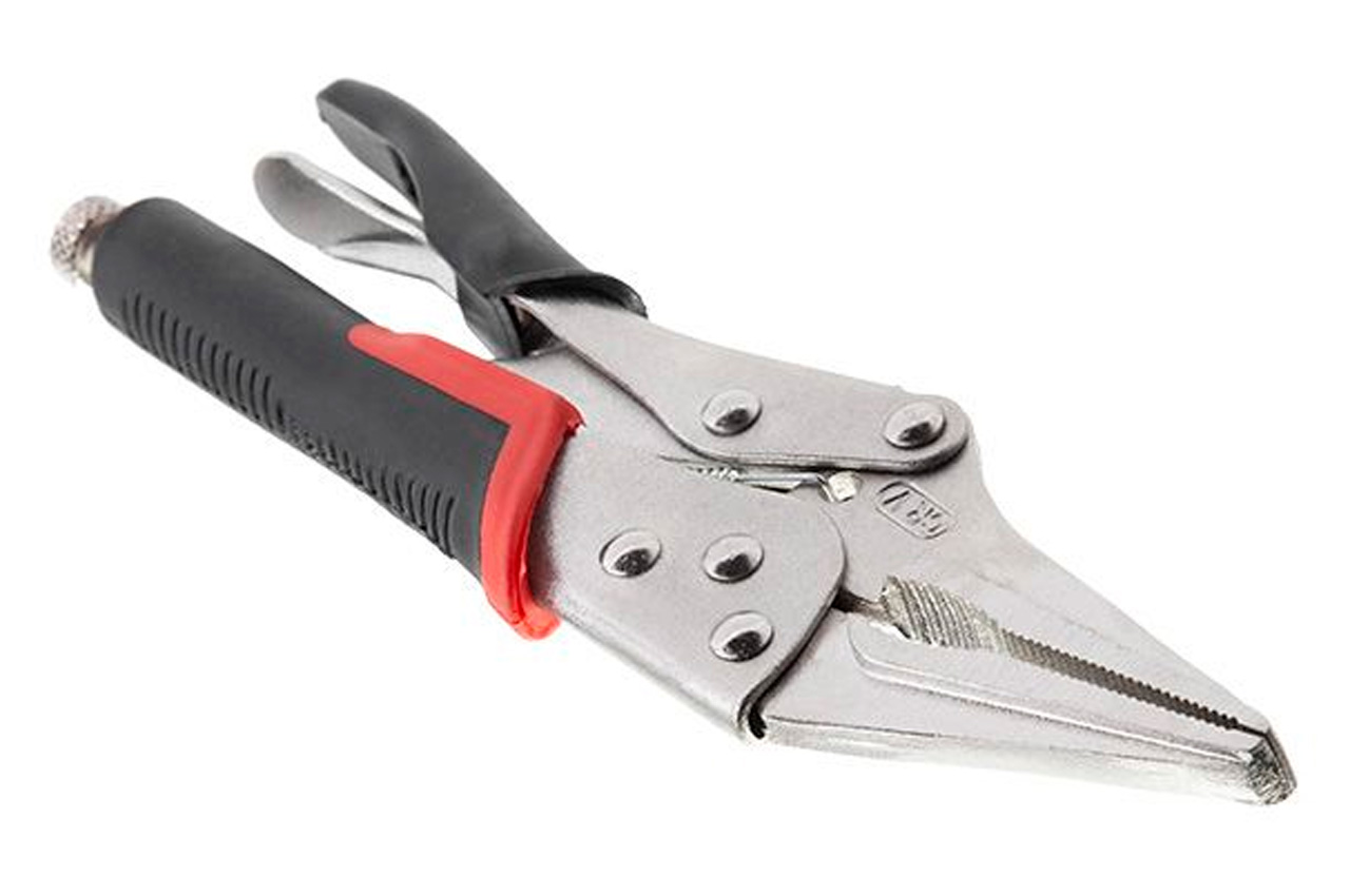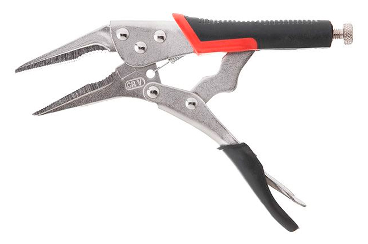 Клещи зажимные универсальные удлиненные с автофиксацией и регулировкой усилия зажима. Длина 230 мм. Цвет ручек красный + черный. Тип клещей: прямые