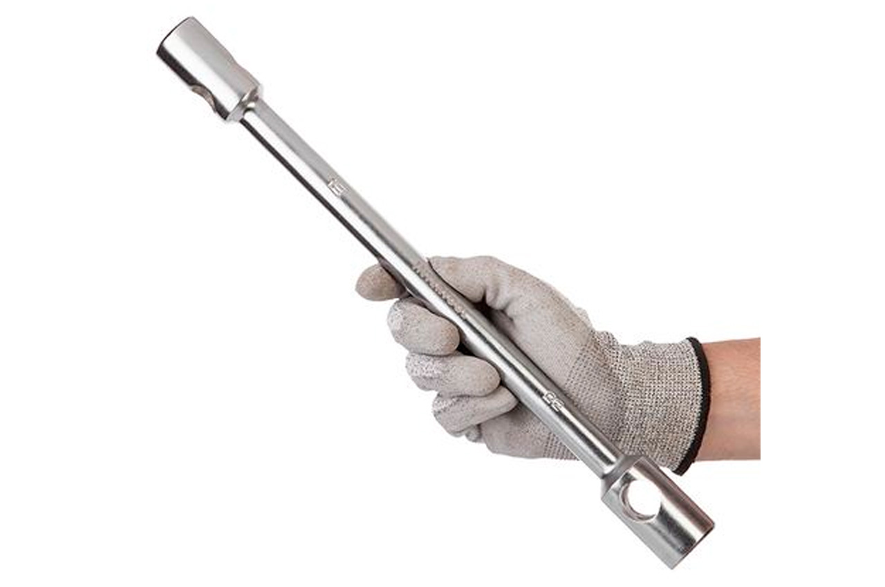 Ключ I-образный с поперечными сквозными отверстиями для воротка. Предназначен для использования при работе с любым шестигранным крепежом. Размер ключа: 19x22 мм