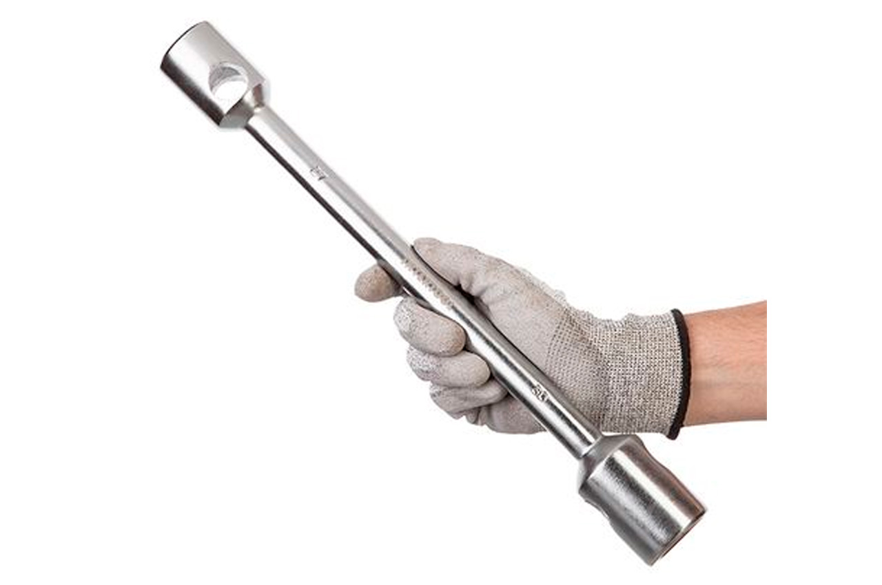 Ключ I-образный с поперечными сквозными отверстиями для воротка. Предназначен для использования при работе с любым шестигранным крепежом. Размер ключа: 27x30 мм