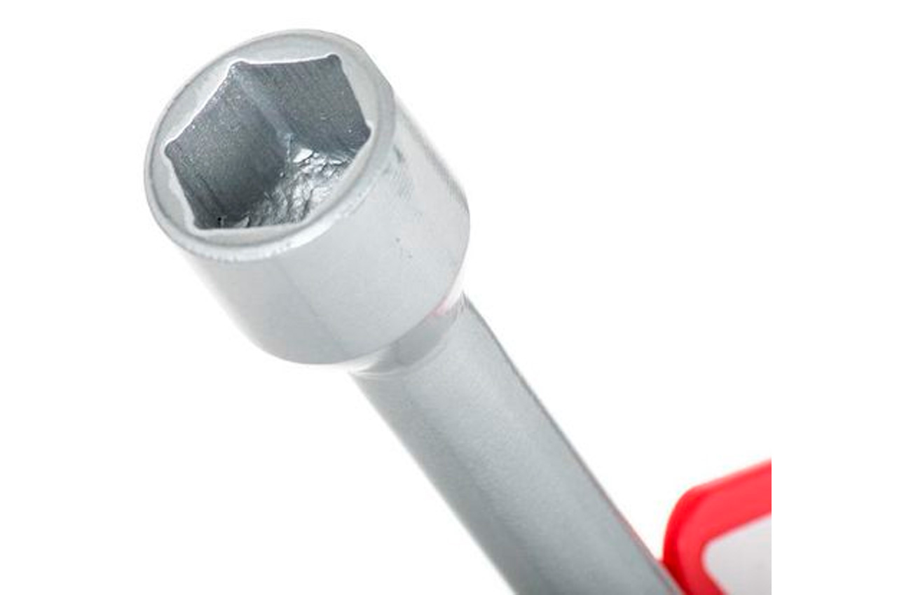 Профессиональный баллонный ключ HT-1603 – это качественный инструмент для монтажа/демонтажа автомобильных колес. Данная модель крестового ключа имеет головки, расположенные с трех сторон. Размеры головок: 17, 19 и 21 мм. Общая длина ключа составляет 406 мм. Имеющийся квадрат с одной из сторон предназначен для использования дополнительных головок с квадратом 1/2".