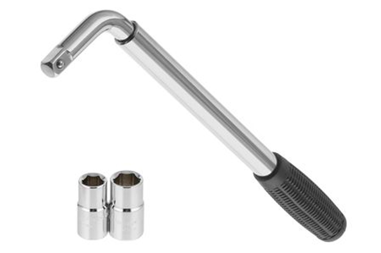 Ключ баллонный телескопический INTERTOOL HT-1605 имеет L-образную форму с посадочным квадратом под головки 1/2". Применяется для монтажа и демонтажа гаек и болтов на колесах автомобилей. Ключ изготовлен из высококачественной Cr-V стали. Телескопический ключ может изменять длину (390 -530 мм), тем самым регулировать усилие. В комплекте две шестигранные двойные головки 17х19 и 21х23 мм, они надежно крепятся к посадочному квадрату ключа благодаря фиксатору.