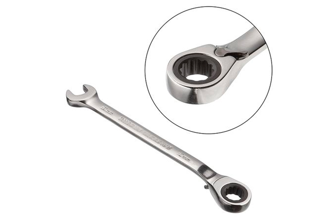 Комбинированный ключ с трещоткой и реверсом, размером 10 мм предназначен для монтажа и демонтажа резьбовых соединений гаек и болтов. Ключ изготовлен из прочной Cr-V стали. Поверхность ключа хромирована и защищает от коррозии, а также поверхность легко очищается от загрязнений. Накидок с храповым механизмом и 72 зубцами, обеспечивает мягкость хода и высокий крутящий момент. Механизм с шагом в 5° позволяет работать в узких и труднодоступных местах.