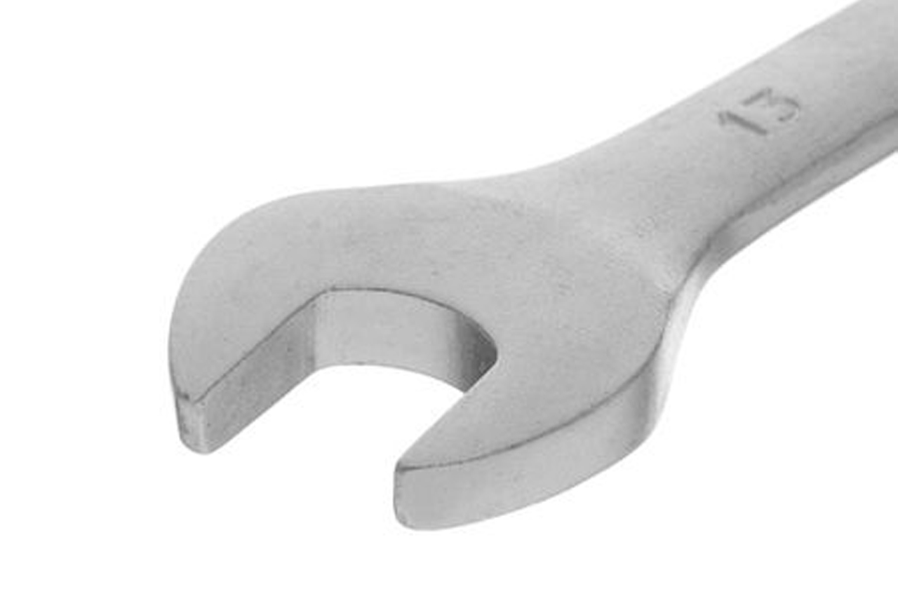 Комбинированный рожково-накидной ключ размером 13 мм – это неотъемлемый инструмент для выполнения различных задач на откручивание, закручивание креплений. Рожковая часть ключа позволяет получить удобный доступ к крепежу. Накидная часть с двенадцатью гранями увеличивает площадь прилегания поверхностей и снижает риск срыва граней гаек и болтов. Ключ изготовлен из прочной Cr-V стали.