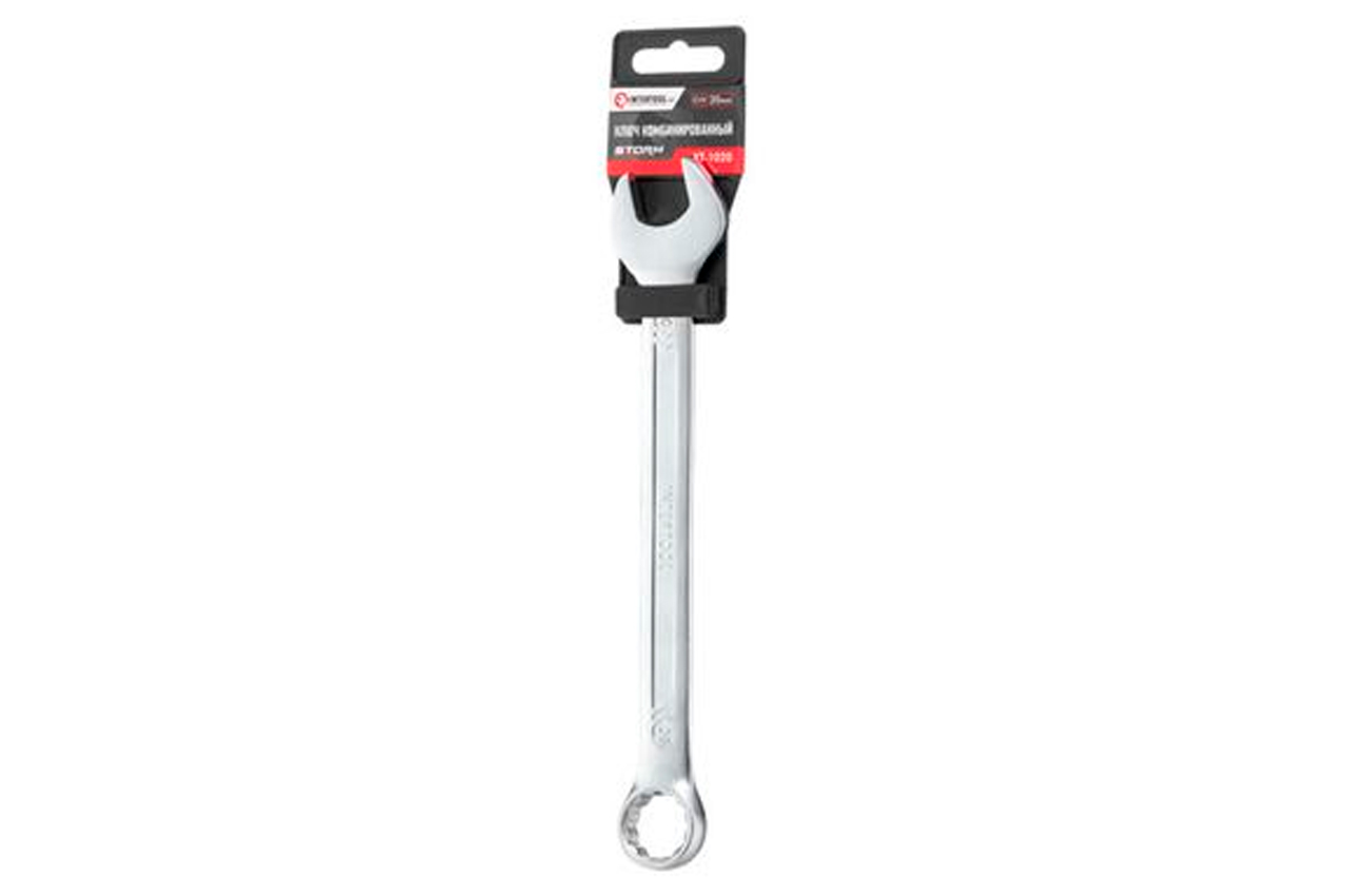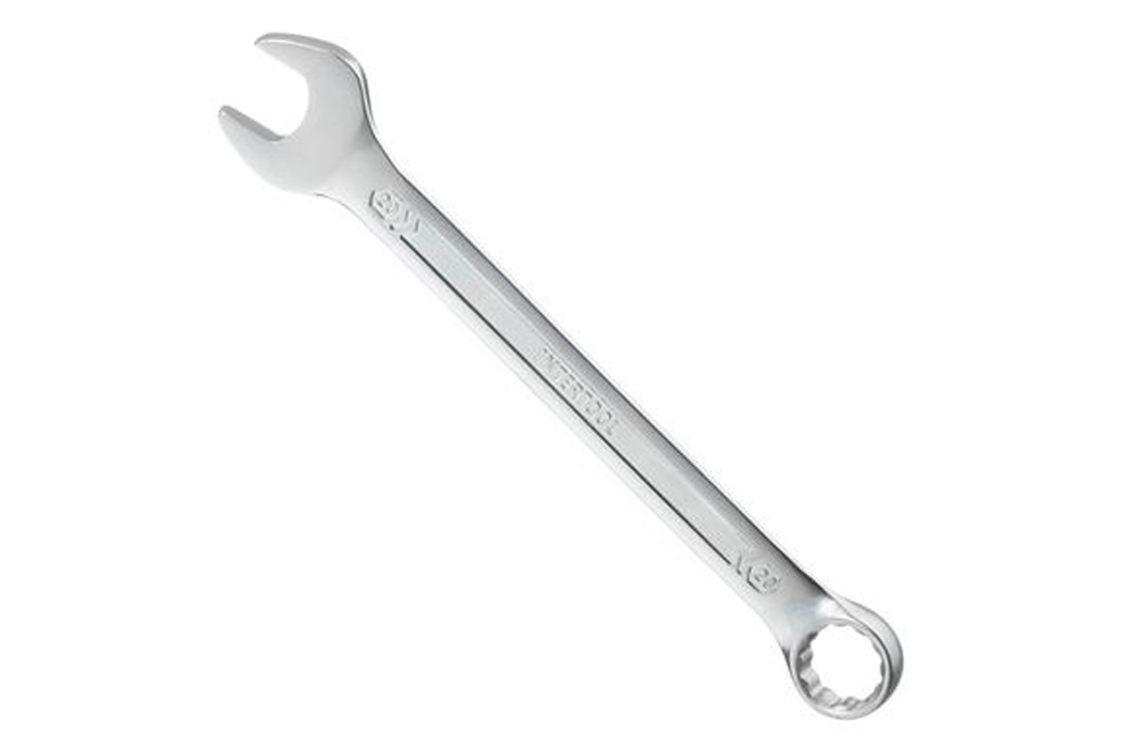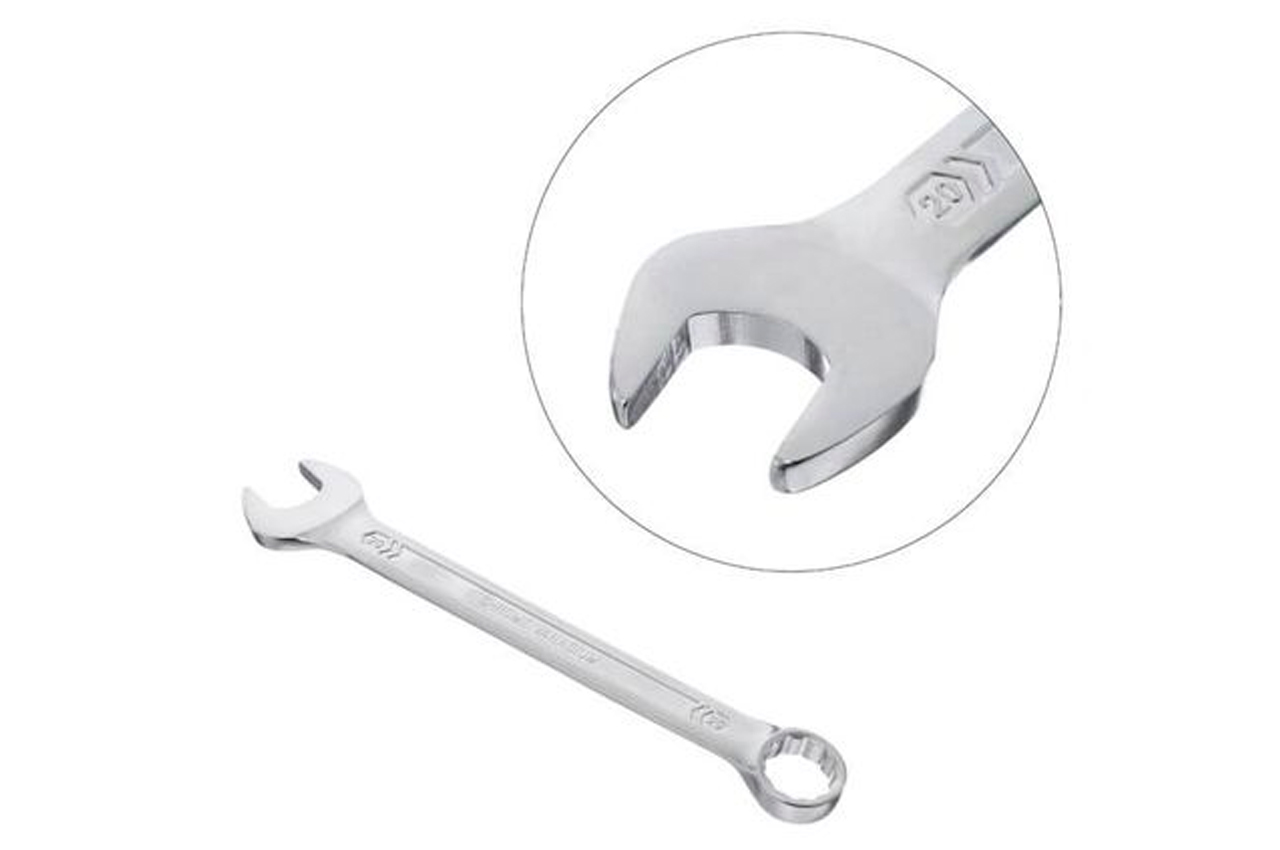 Ключ комбинированный. Это качественное сочетание двух наиболее распространенных видов ключей - гаечного и рожкового. Обе головки имеют одинаковый размер. Ключ изготавливается из легированного хромванадиевого сплава, что обеспечивает высокие эксплуатационные характеристики. Сатин-хромовое покрытие надежно защищает инструмент от коррозии. Размер ключа: 20 мм; Покрытие: сатин-хром