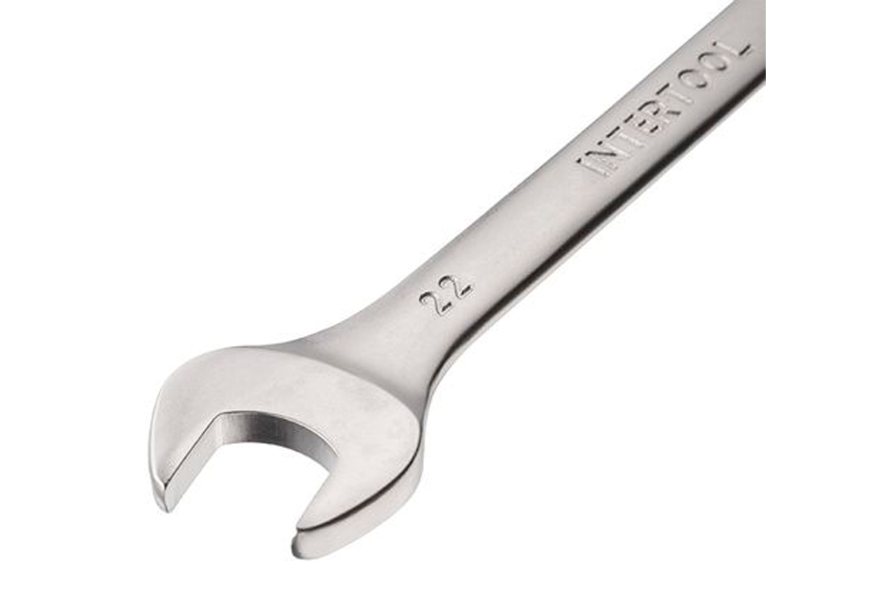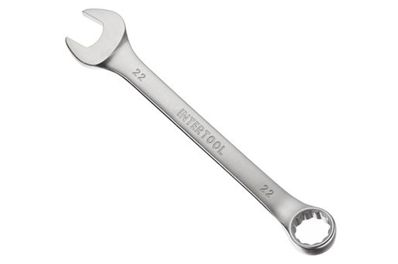 Ключ комбинированный. Это качественное сочетание двух наиболее распространенных видов ключей - гаечного и рожкового. Обе головки имеют одинаковый размер. Ключ изготавливается из легированного хромванадиевого сплава, что обеспечивает высокие эксплуатационные характеристики. Сатин-хромовое покрытие надежно защищает инструмент от коррозии. Размер ключа: 22 мм