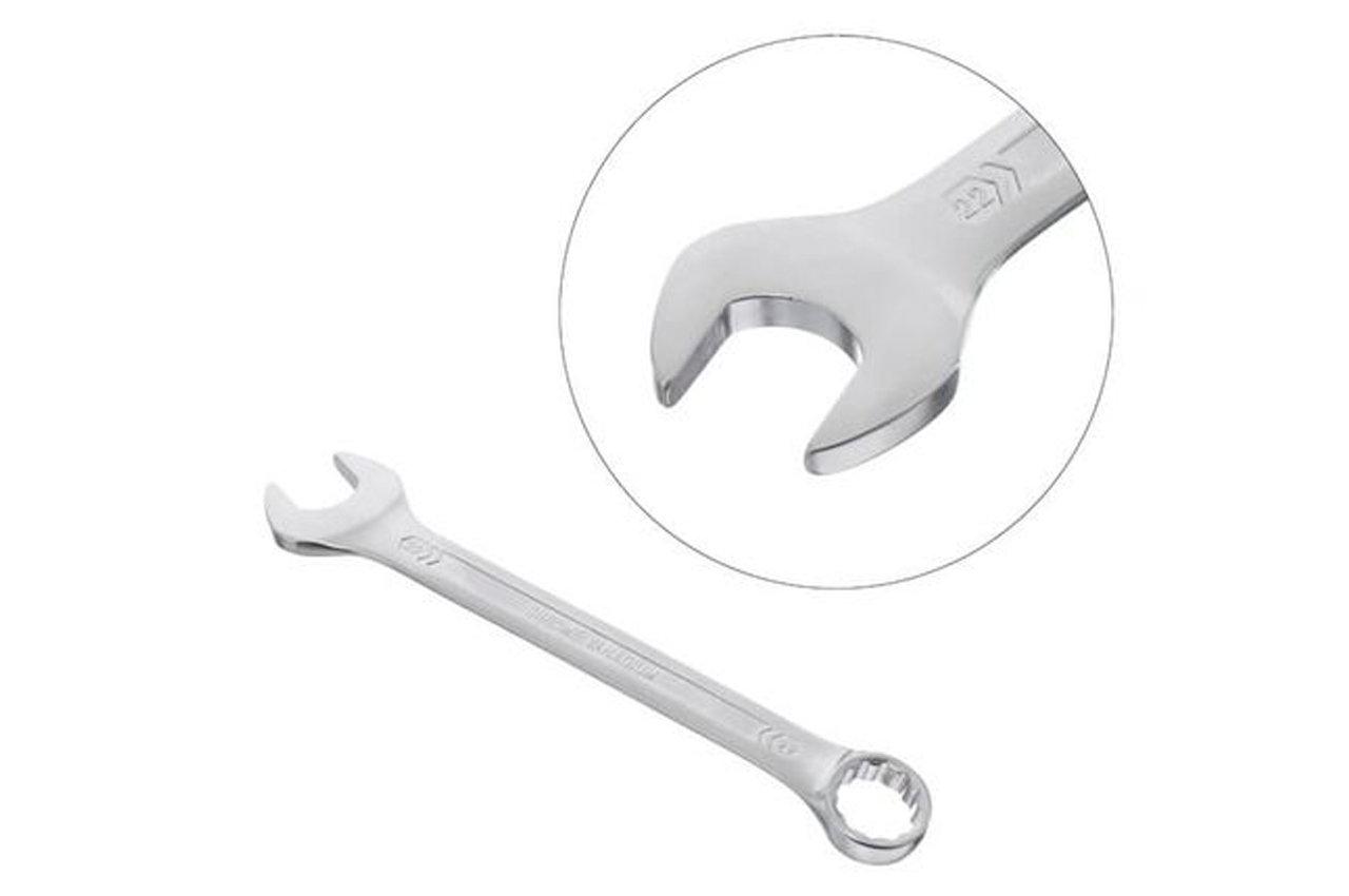 Комбинированный рожково-накидной ключ, размером 22 мм – это неотъемлемый инструмент для выполнения различных задач на откручивание, закручивание крепежей. Широко используется во всех сферах от бытового применения до профессионального, благодаря высоким эксплуатационным характеристикам. Ключ изготовлен из прочной Cr-V стали, методом холодной штамповки, что гарантирует исключительную износостойкость и долговечность. Отлично выдерживает постоянные нагрузки и обладает высокой антикоррозийной стойкостью благодаря трехслойному покрытию. Поверхность ключа также матирована сатин-хромом для надежного захвата в работу даже испачканными в масле руками. Вы можете быть уверены в качестве ключа, ведь его подтверждает пожизненная гарантия! Особенности: Сверхпрочная, износостойкая Cr-V сталь, не подвержена деформациям. Ключ соответствует европейскому стандарту качества DIN3113. Удобный в работе - форма и изгиб рукоятки ключа с оптимальным рычагом для приложения усилия. Размер ключа: 22 мм; Покрытие: сатин-хром