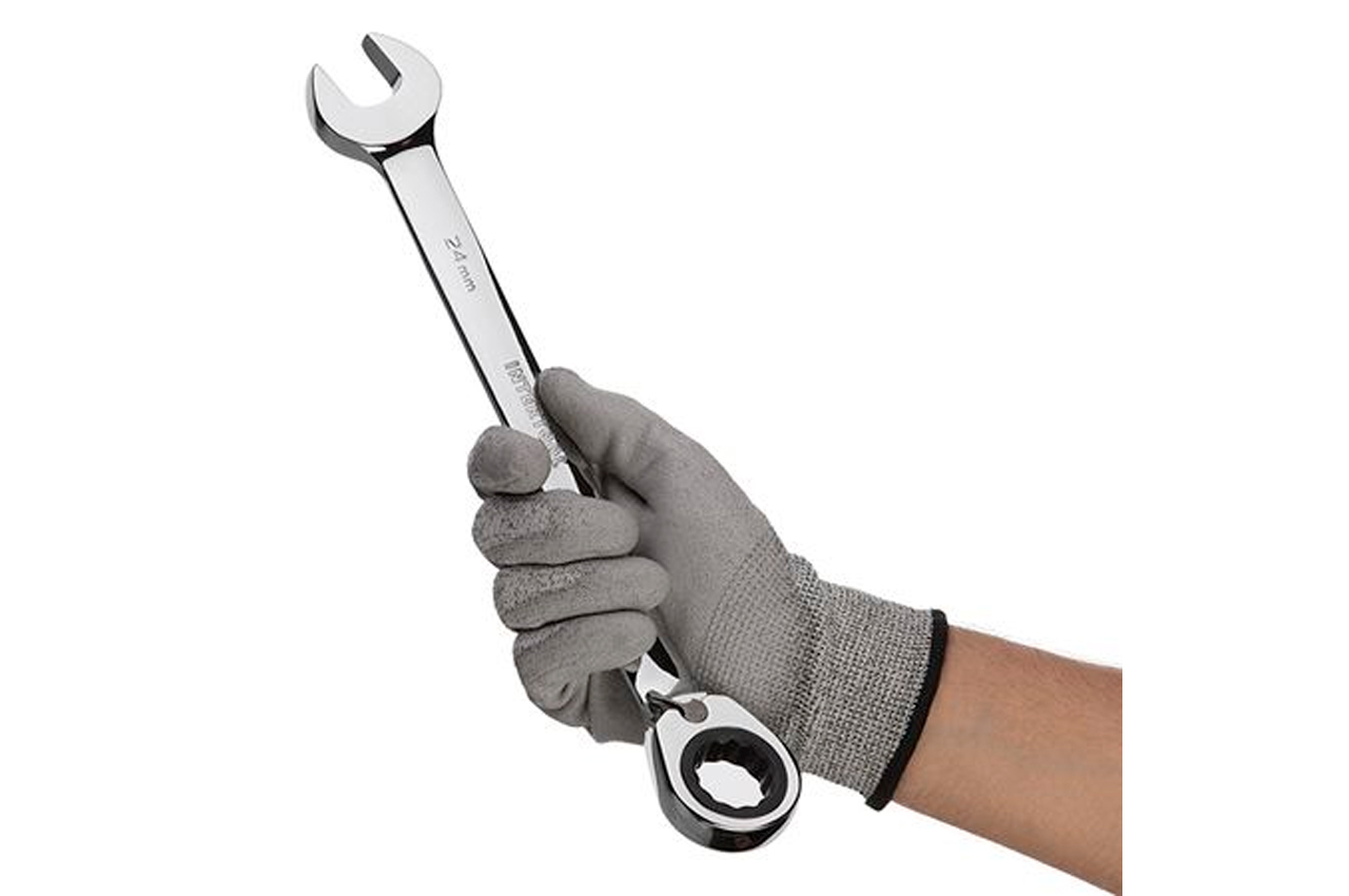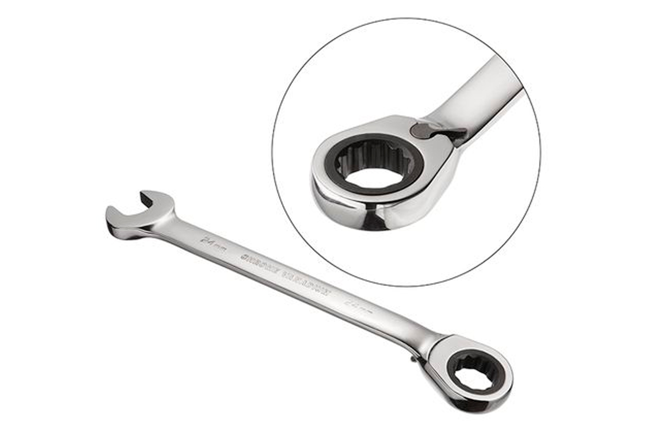 Комбинированный ключ с трещоткой и реверсом, размером 24 мм предназначен для монтажа и демонтажа резьбовых соединений гаек и болтов. Ключ изготовлен из прочной Cr-V стали. Поверхность ключа хромирована и защищает от коррозии, а также поверхность легко очищается от загрязнений. Накидок с храповым механизмом и 72 зубцами, обеспечивает мягкость хода и высокий крутящий момент. Механизм с шагом в 5° позволяет работать в узких и труднодоступных местах.