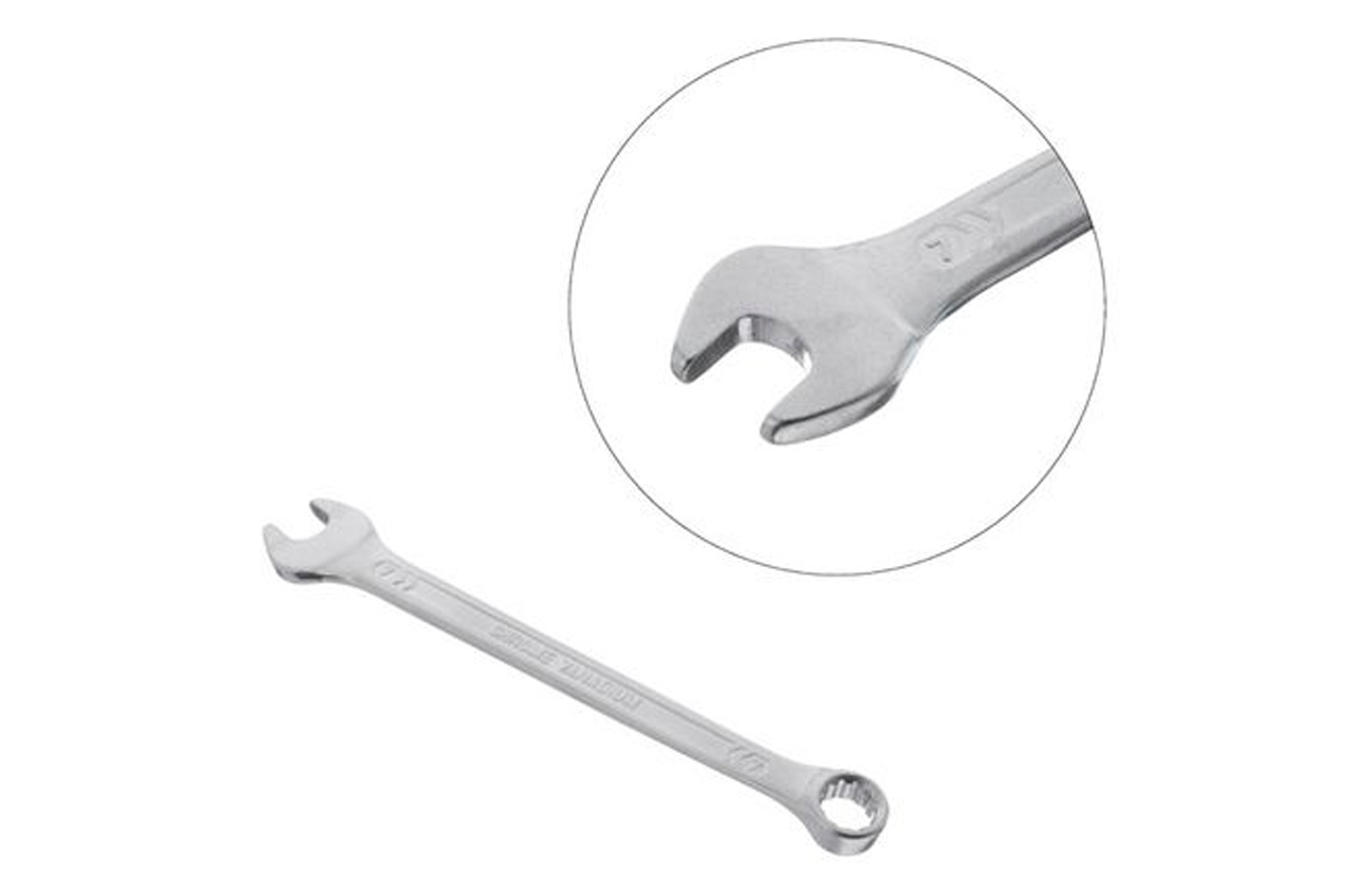 Комбинированный рожково-накидной ключ, размером 7 мм – это неотъемлемый инструмент для выполнения различных задач на откручивание, закручивание крепежей. Широко используется во всех сферах от бытового применения до профессионального, благодаря высоким эксплуатационным характеристикам. Ключ изготовлен из прочной Cr-V стали, методом холодной штамповки, что гарантирует исключительную износостойкость и долговечность. Отлично выдерживает постоянные нагрузки и обладает высокой антикоррозийной стойкостью благодаря трехслойному покрытию. Поверхность ключа также матирована сатин-хромом для надежного захвата в работу даже испачканными в масле руками. Вы можете быть уверены в качестве ключа, ведь его подтверждает пожизненная гарантия! Особенности: Сверхпрочная, износостойкая Cr-V сталь, не подвержена деформациям. Ключ соответствует европейскому стандарту качества DIN3113. Удобный в работе - форма и изгиб рукоятки ключа с оптимальным рычагом для приложения усилия. Размер ключа: 7 мм; Покрытие: сатин-хром