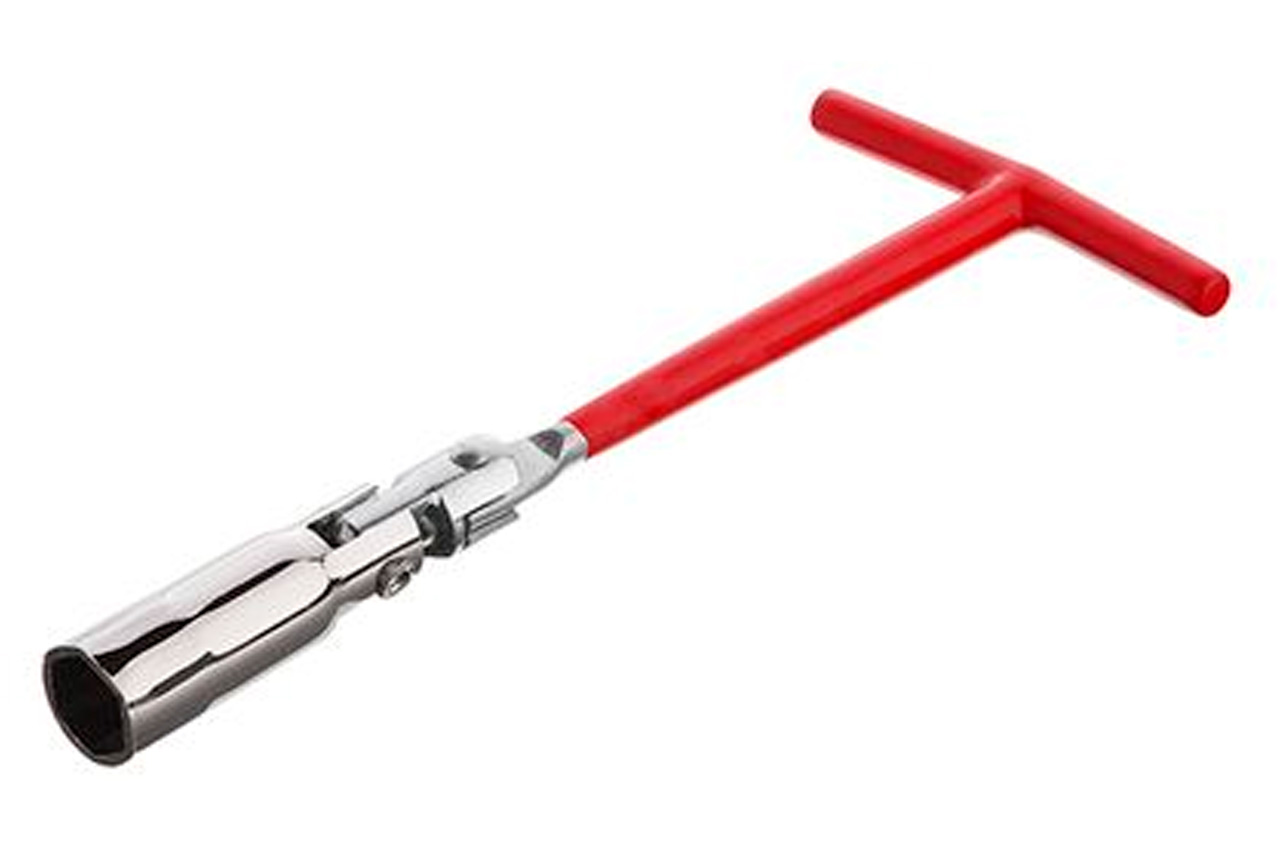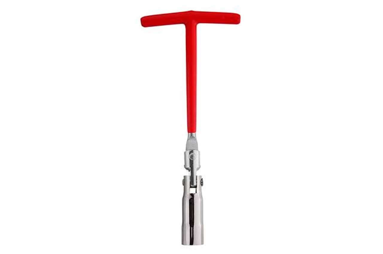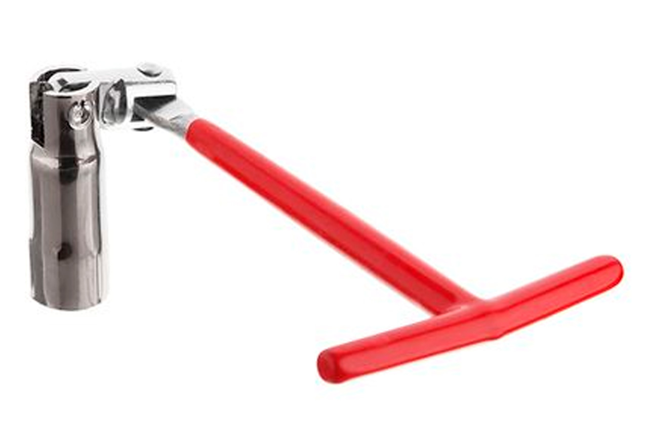 Инструмент применяется при установке и снятии свечей зажигания на машинах с бензиновыми моторами. Имеет Т-образную форму и шарнир.