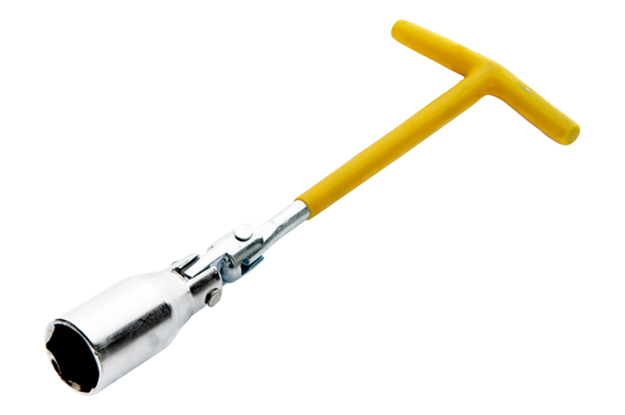 Инструмент применяется при установке и снятии свеч зажигания на машинах с бензиновыми моторами. Имеет Т-образную форму и шарнир.