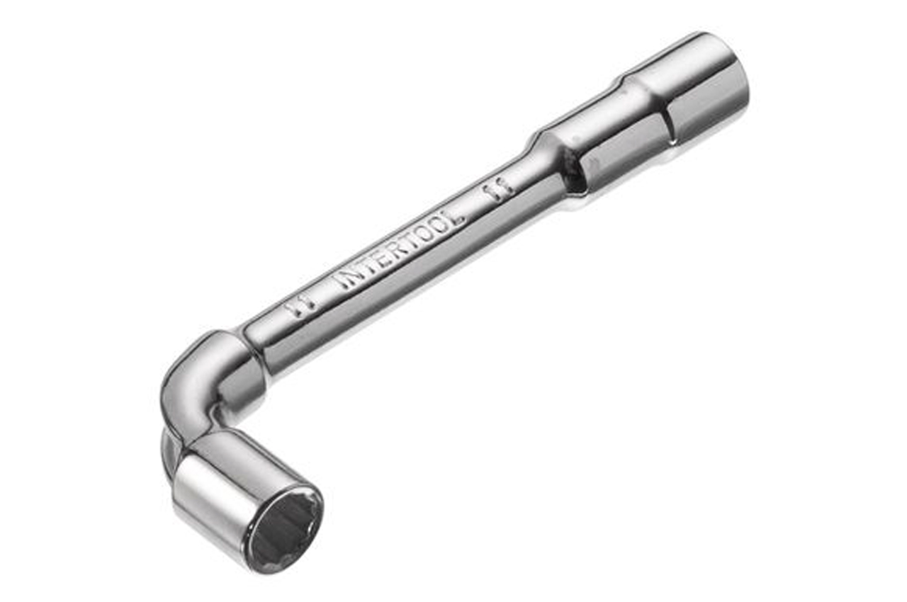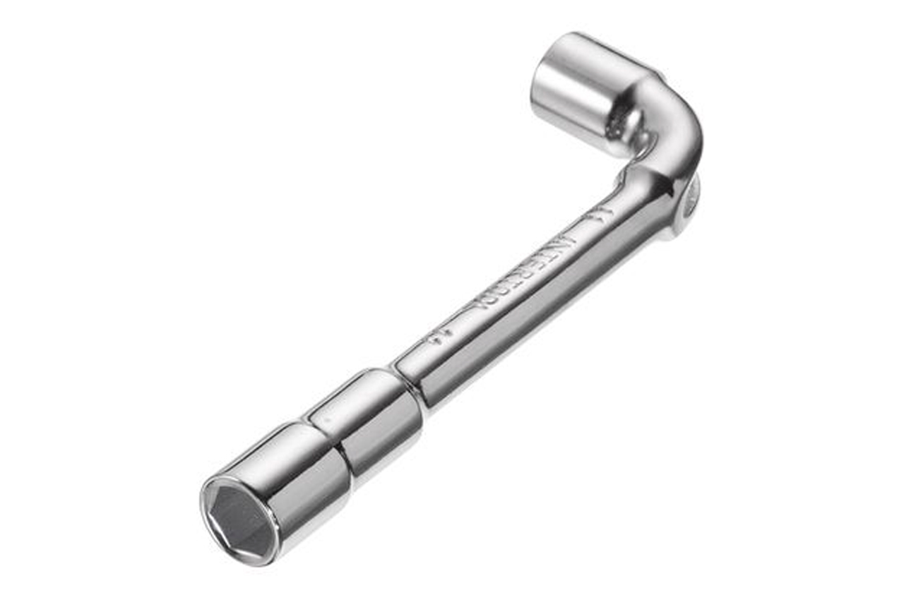 Ключ торцевой с отверстием L-образной формы. Обе головки имеют одинаковый размер (длинный конец имеет 6 граней, а короткий 12). Размер ключа: 11 мм
