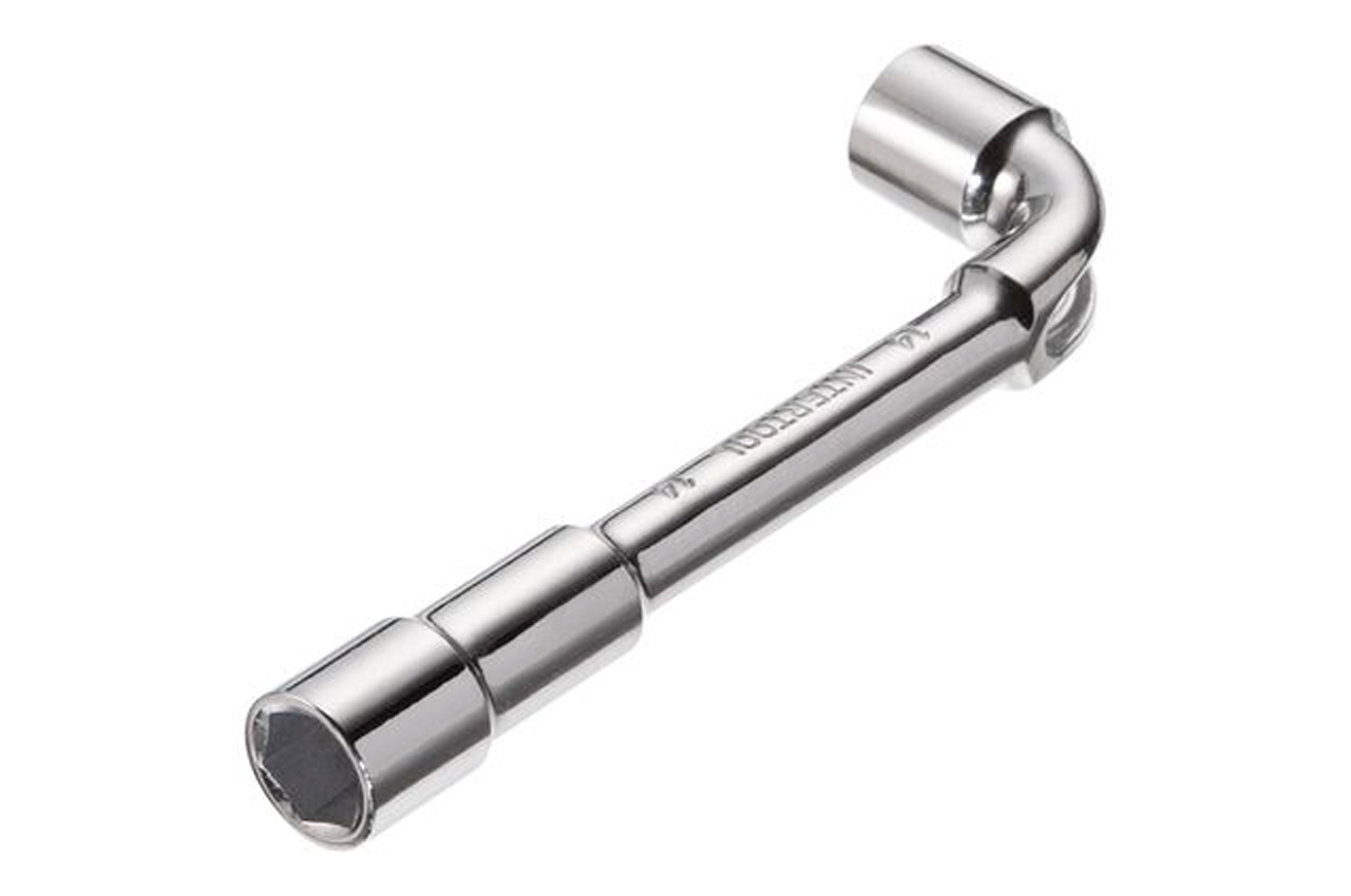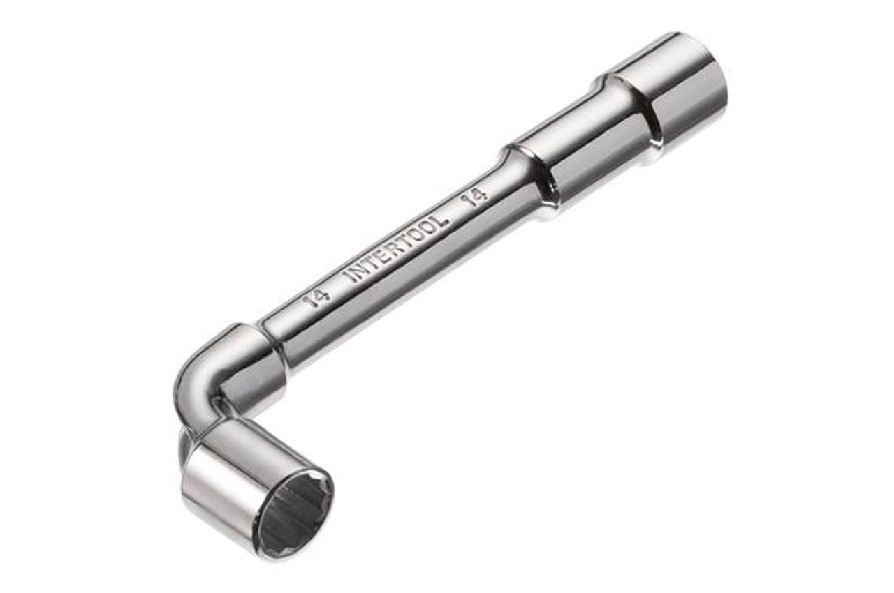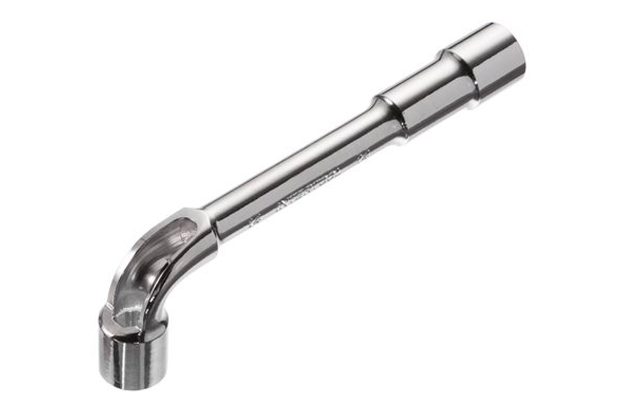 Ключ торцевой с отверстием L-образной формы. Обе головки имеют одинаковый размер (длинный конец имеет 6 граней, а короткий 12). Размер ключа: 14 мм