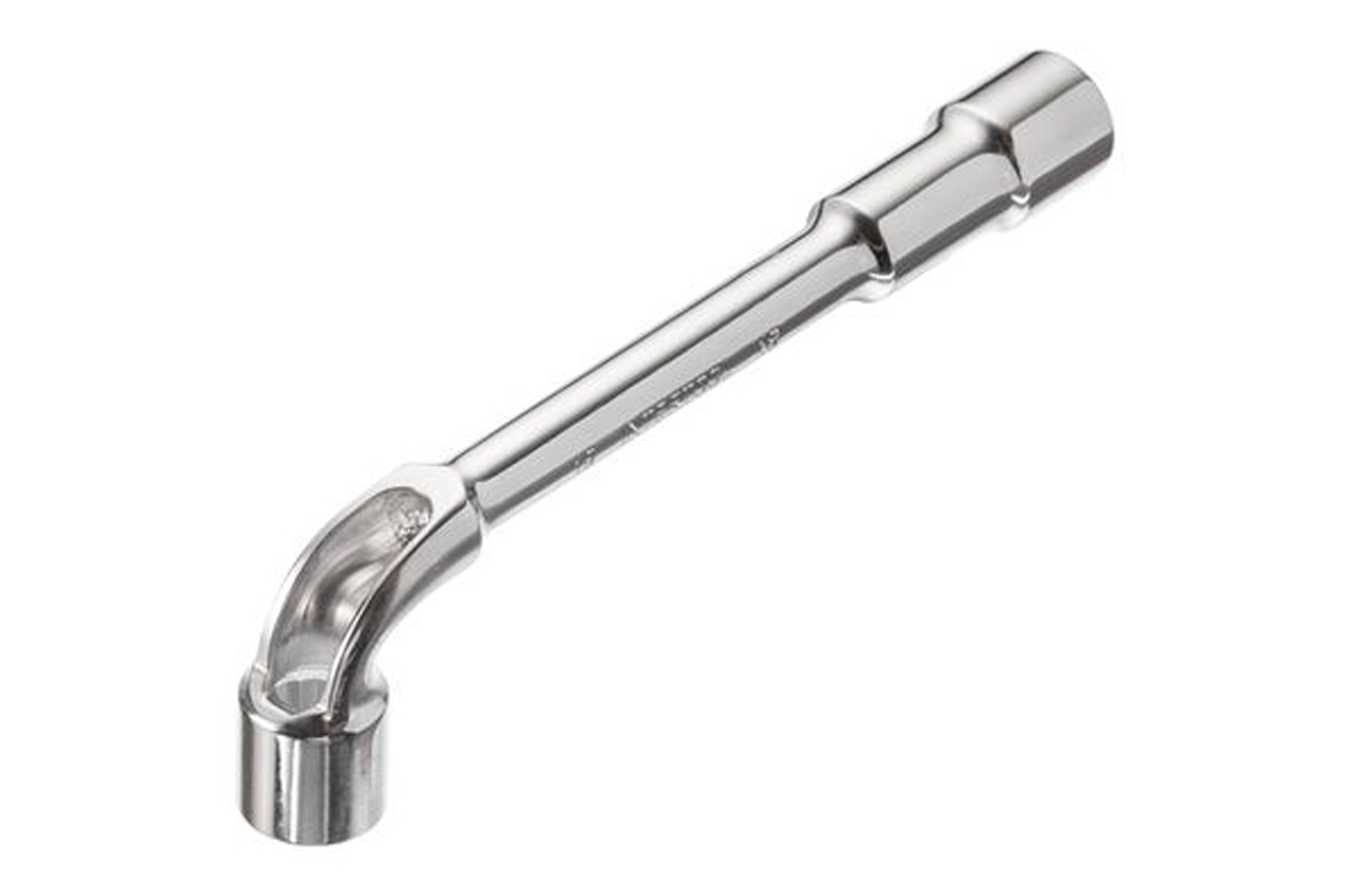 Ключ торцевой с отверстием L-образной формы. Обе головки имеют одинаковый размер (длинный конец имеет 6 граней, а короткий 12). Размер ключа: 19 мм