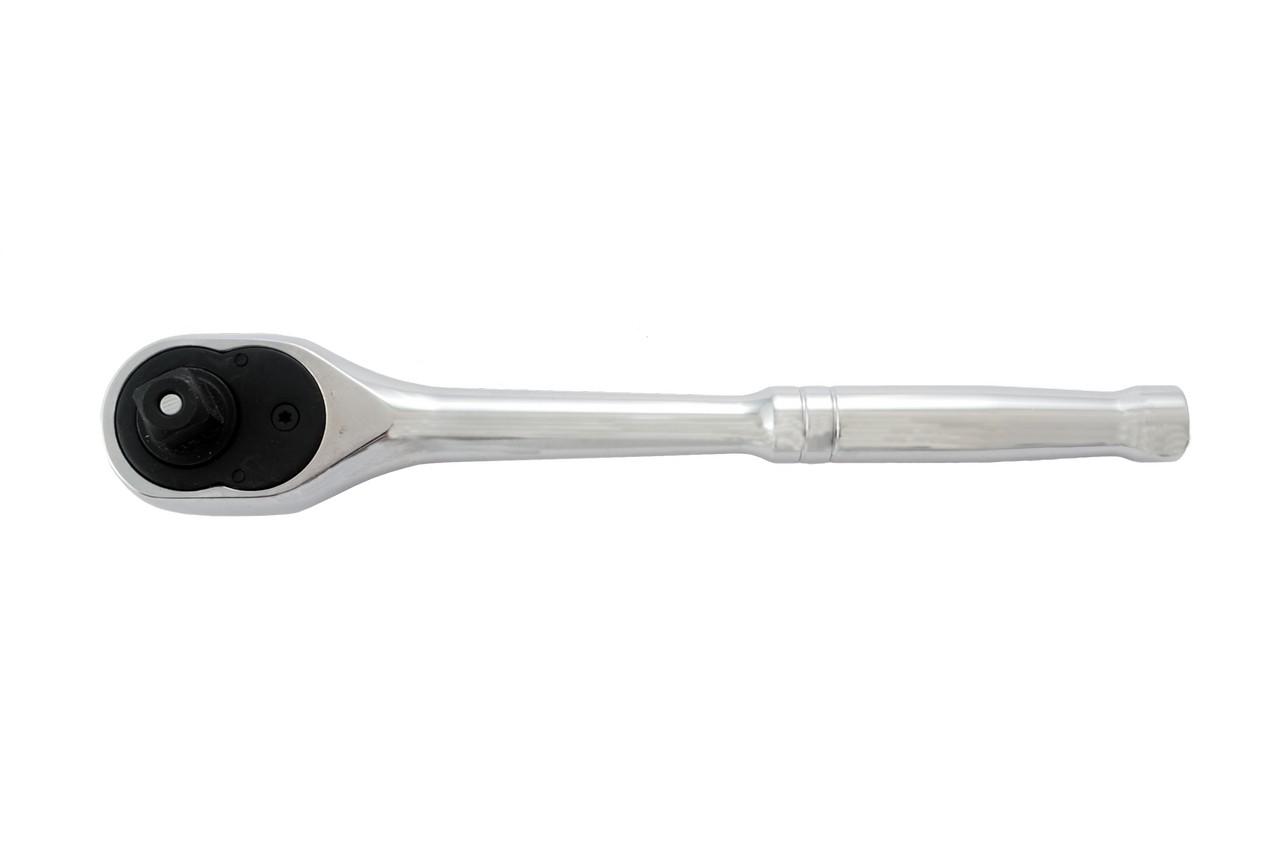 Трещотка идеально подходит для автолюбителей и домашних мастеров, станет отличным помощником в быту, в гараже и т.д. Применяется для различных монтажно-слесарных работ, закручивания и откручивания резьбовых соединений. Работает в комплексе не только с торцевыми головками, но с удлинителями, воротками и другими инструментами. Размер посадочного квадрата для головок – 1/2". Число зубцов 72Т