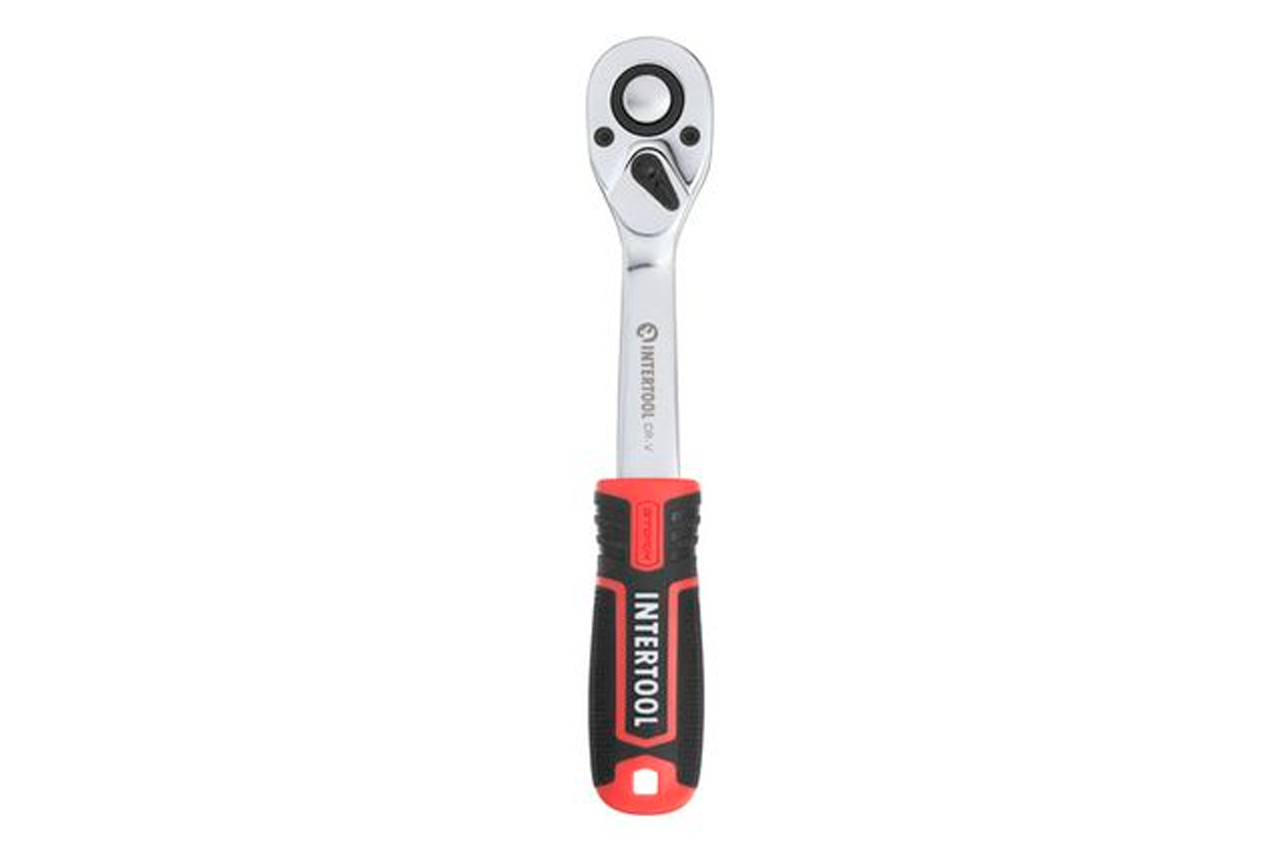 Трещоточная рукоятка – необходимая вещь в арсенале любого хозяина или мастера-профессионала. Предназначена для различных монтажно-слесарных работ, применяется для монтажа и демонтажа резьбовых соединений. Работает в комплексе не только с торцевыми головками, но и с удлинителями, воротками и другими инструментами. Размер присоединительного квадрата – 1/2". Особенности: Выносливая, износостойкая Cr-V сталь Удобная прорезиненная рукоятка Работает в ограниченных пространствах и в труднодоступных местах Трещотка изготовлена из прочной Сr-V стали и выдерживает значительные нагрузки. Два слоя никелевого покрытия уберегут инструмент от коррозии и во множество раз продлят срок службы. Все детали храпового механизма изготовлены в Тайване, отличаются надежностью и плавностью хода. 72 зуба с мелким шагом дают возможность работать в ограниченном пространстве. Трещотка с изогнутой формой ручки достает крепежи в самых труднодоступных местах. Наличие реверса и быстрая смена головок упростят вашу работу во множество раз! Трещотка удобно лежит в руке благодаря двухкомпонентной рукоятке с резиновым антискользящим покрытием. Общая длина: 250 мм; Квадрат: 1/2"