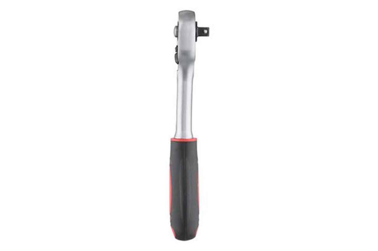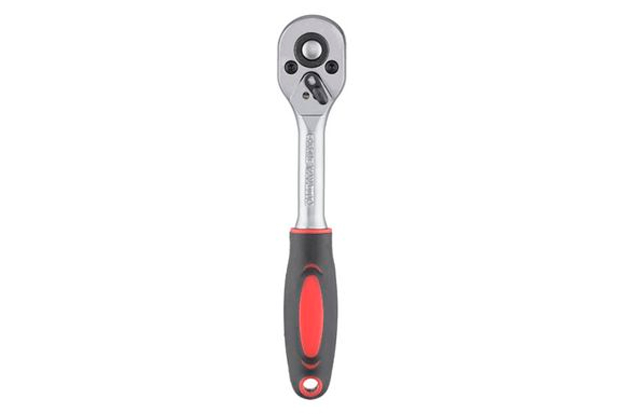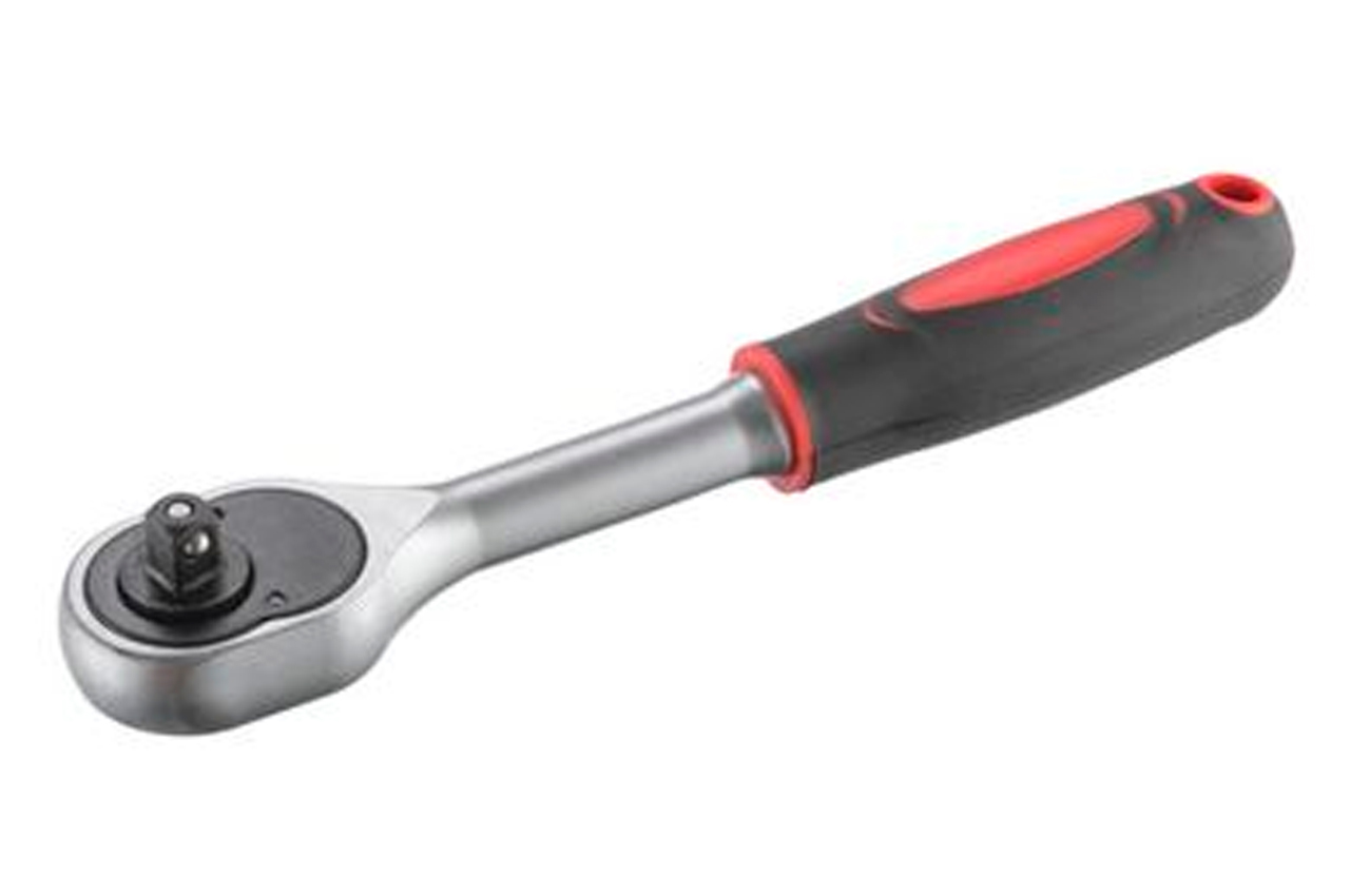 Хром-ванадиевая сталь, квадрат 1/4". Двухпомпонентная рукоятка. Храповой механизм с 24-мя зубьями. Трещотка имеет флажок переключения направления вращения и кнопку быстрого сброса головки.