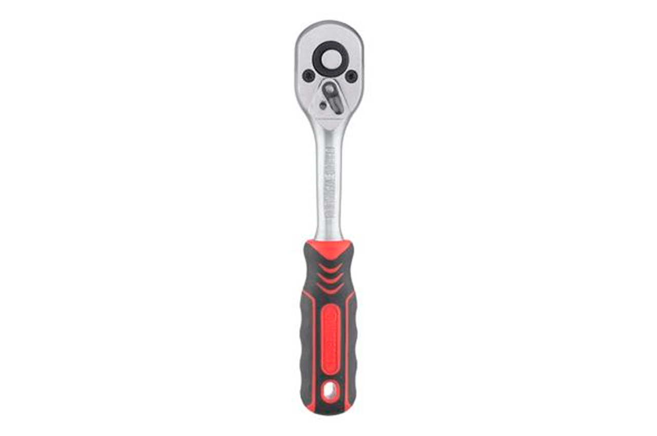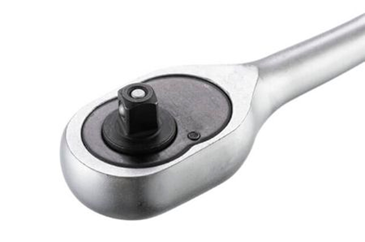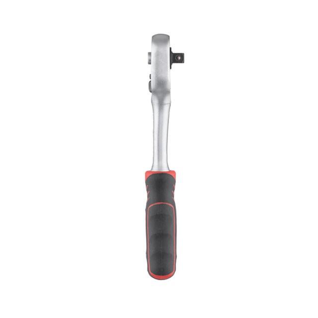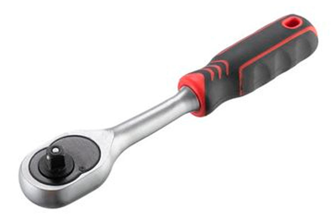 Рукоятка с храповым механизмом (трещотка) на 45 зубов. Рукоятка подходит для головок с квадратом в 1/4". Рукоятка предназначена для работы с гайками и болтами. Без особых усилий, прилагаемых на рукоятку вы можете как откручивать, так и закручивать гайки и болты. Эргономичная двухкомпонентная рукоятка, приятна на ощупь. Хромванадиевая сталь рукоятки обеспечивает изделию прочность, износостойкость. долговечность. Если вы еще пользуетесь гаечными ключами, то пора задуматься и над покупкой трещотки. Естественно, что к трещотке еще нужно приобрести головки нужного размера. А еще лучше, купить набор инструментов, в котором есть и трещотки, и головки. Выбор головок стал еще более простым и удобным. При нажатии на металлическую кнопку, находящуюся в верхнем основании рукоятки, вы с легкостью снимаете головку с гнезда. Подробнее о рукоятках с храповым механизмом Квадрат: 1/4"