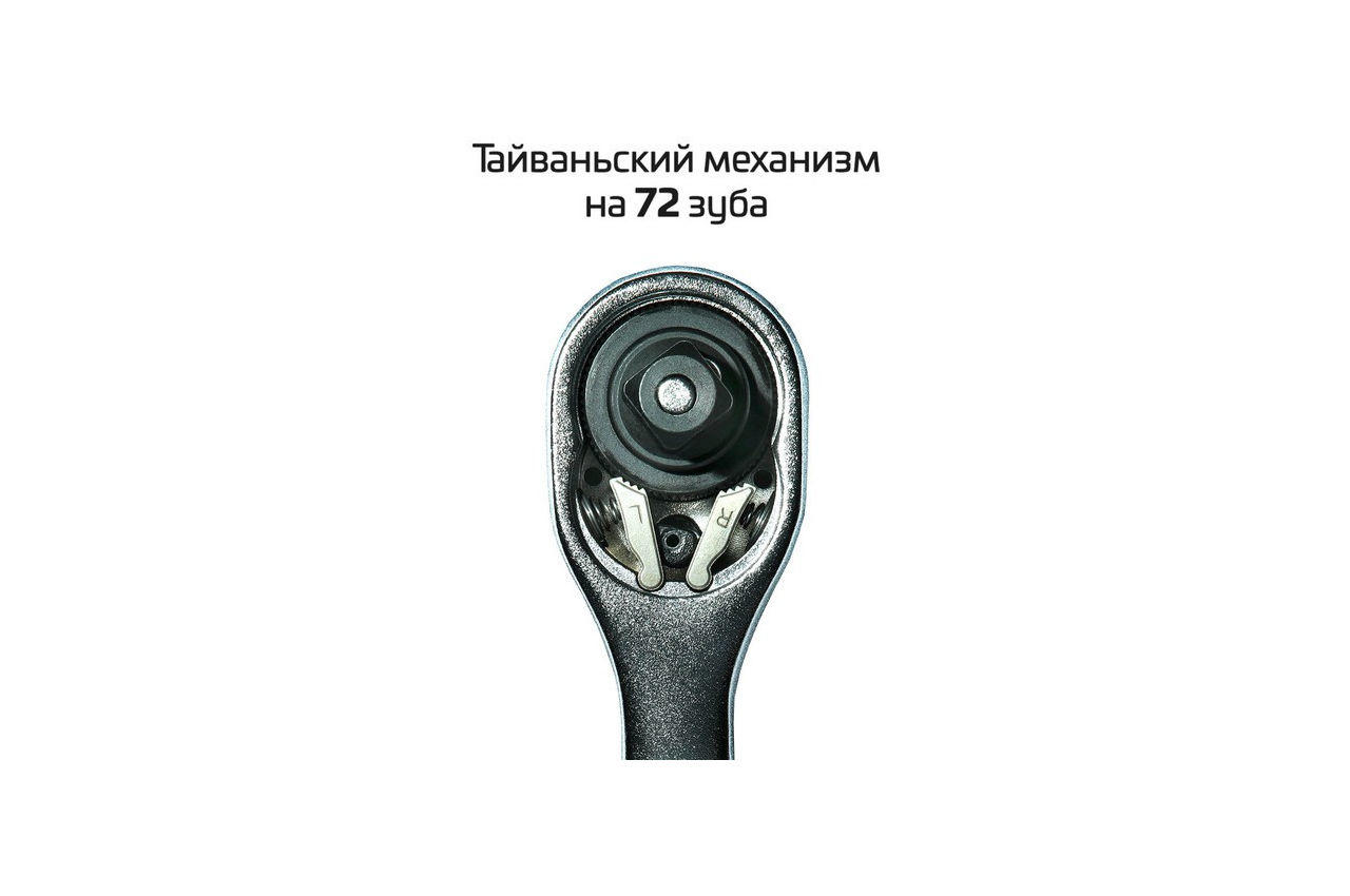 Трещоточная рукоятка – необходимая вещь в арсенале любого хозяина или мастера-профессионала. Предназначена для различных монтажно-слесарных работ, применяется для монтажа и демонтажа резьбовых соединений. Работает в комплексе не только с торцевыми головками, но и с удлинителями, воротками и другими инструментами. Размер присоединительного квадрата – 1/4". Особенности: Выносливая, износостойкая Cr-V сталь Удобная прорезиненная рукоятка Работает в ограниченных пространствах и в труднодоступных местах Трещотка изготовлена из прочной Сr-V стали и выдерживает значительные нагрузки. Два слоя никелевого покрытия уберегут инструмент от коррозии и во множество раз продлят срок службы. Все детали храпового механизма изготовлены в Тайване, отличаются надежностью и плавностью хода. 72 зуба с мелким шагом дают возможность работать в ограниченном пространстве. Трещотка с изогнутой формой ручки достает крепежи в самых труднодоступных местах. Наличие реверса и быстрая смена головок упростят вашу работу во множество раз! Трещотка удобно лежит в руке благодаря двухкомпонентной рукоятке с резиновым антискользящим покрытием. Общая длина: 150 мм; Квадрат: 1/4"