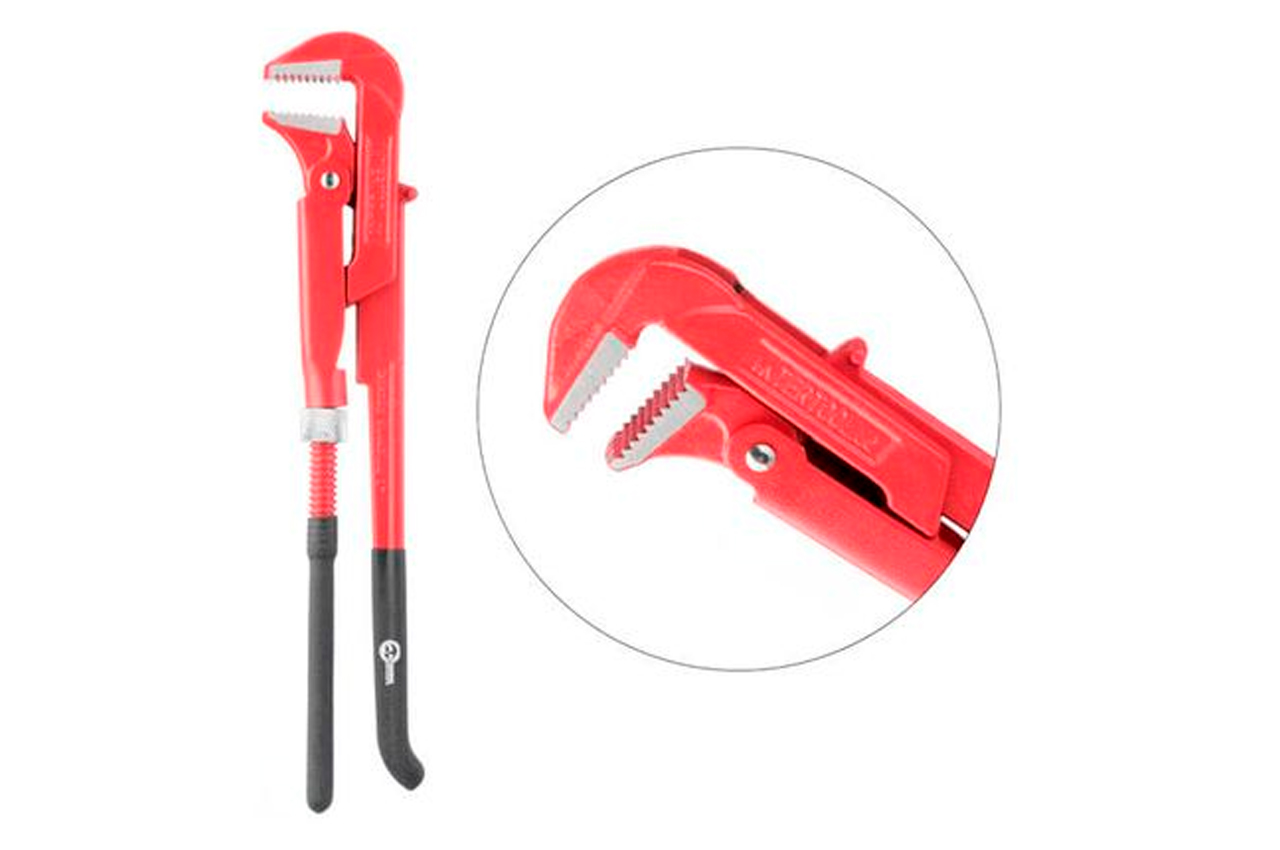 Ключ трубный рычажный применяется для ремонтно-сантехнических работ. Губки расположены под углом 90° к ручкам. Ключ позволяет вращать округлые рабочие поверхности типа труб, муфт, гаек, винтов, головок кранов. Диаметр захвата регулируется за счет подвижного нижнего рычага. Изготовлен из высококачественной инструментальной стали, что гарантирует высокую износостойкость и защиту от коррозии в процессе работы. Эргономичная прорезиненная рукоятка обеспечивает удобство захвата инструмента. Размеры: 1"