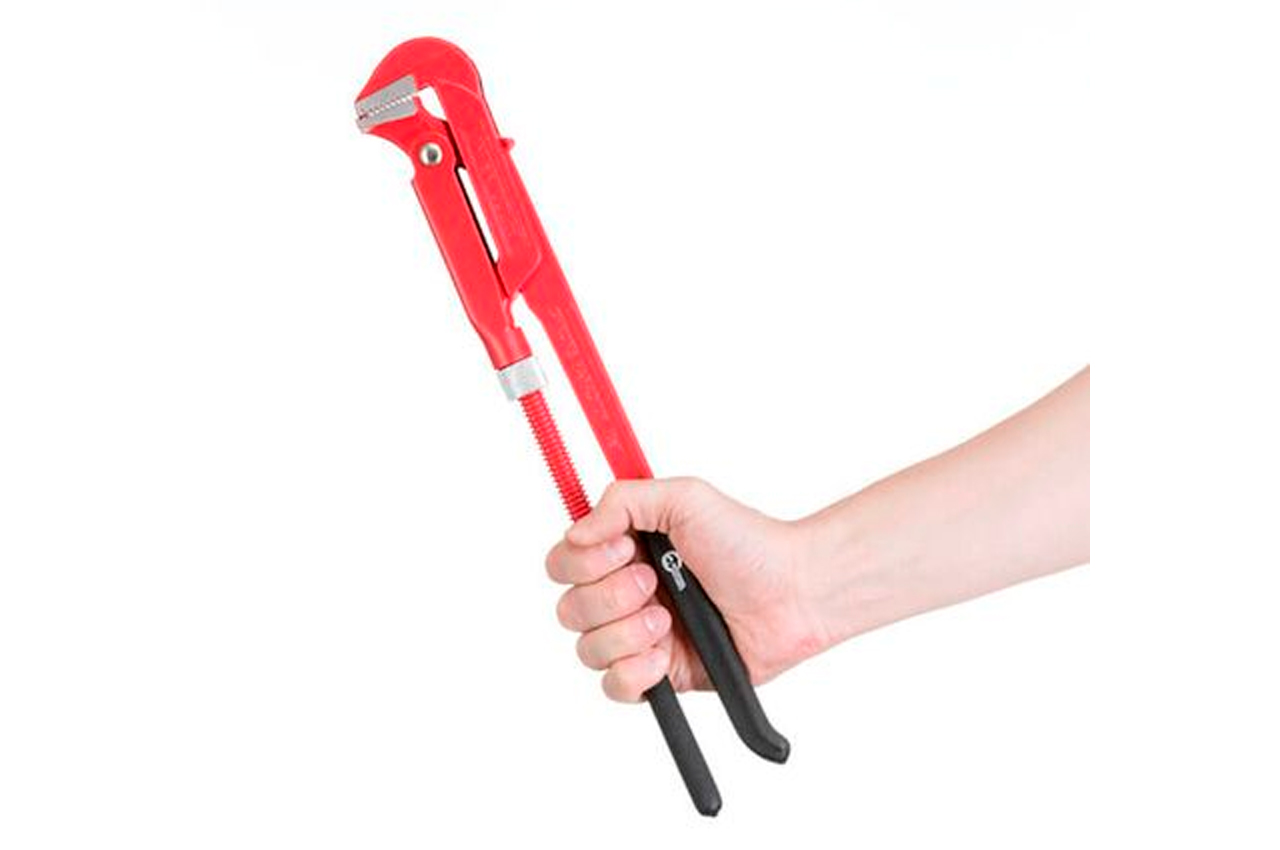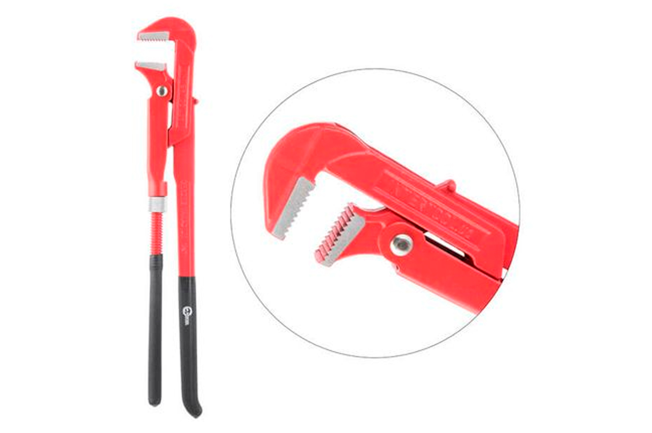 Ключ трубный рычажный применяется для ремонтно-сантехнических работ. Губки расположены под углом 90° к ручкам. Ключ позволяет вращать округлые рабочие поверхности типа труб, муфт, гаек, винтов, головок кранов. Диаметр захвата регулируется за счет подвижного нижнего рычага. Изготовлен из высококачественной инструментальной стали, что гарантирует высокую износостойкость и защиту от коррозии в процессе работы. Эргономичная прорезиненная рукоятка обеспечивает удобство захвата инструмента. Размеры: 1.5"