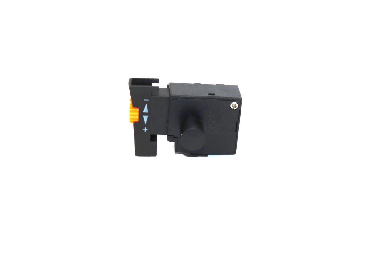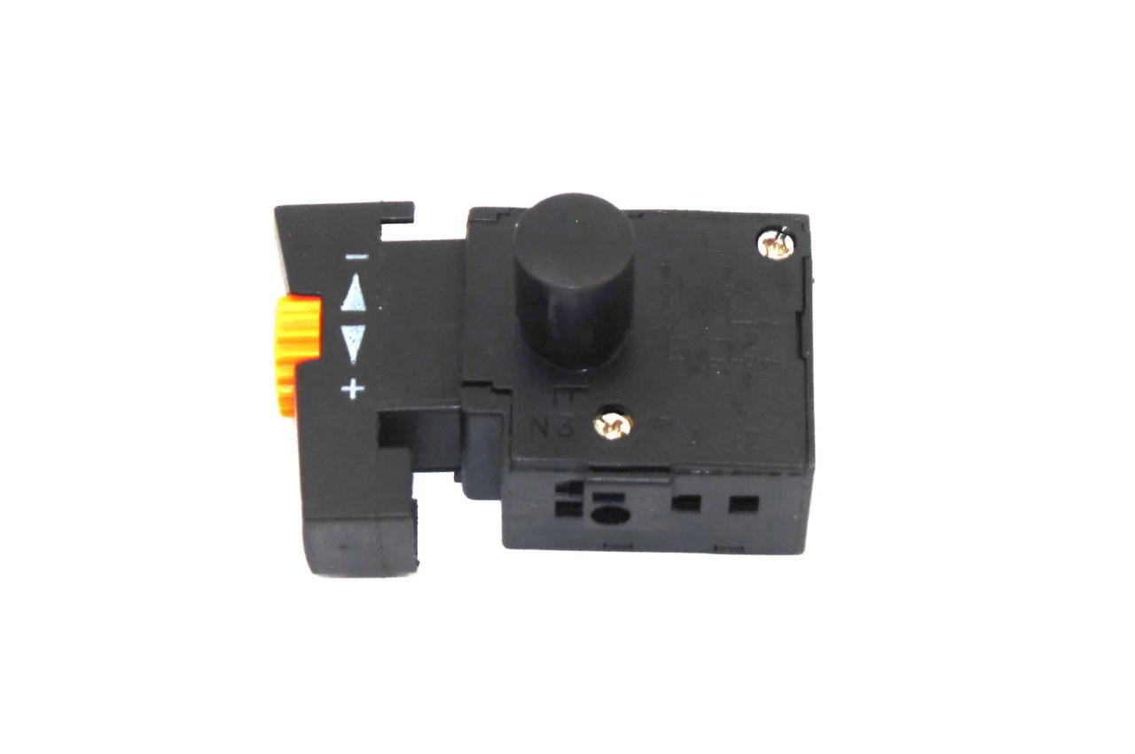 Кнопка для моделей: электролобзик Фиолент ПМ3-600Э; ПМ3-600Э (лазер); ПМ4-700Э. С фиксатором для длительного включения и электронной регулировкой оборотов нажатием на педаль кнопки. Крепление проводов - винтами.