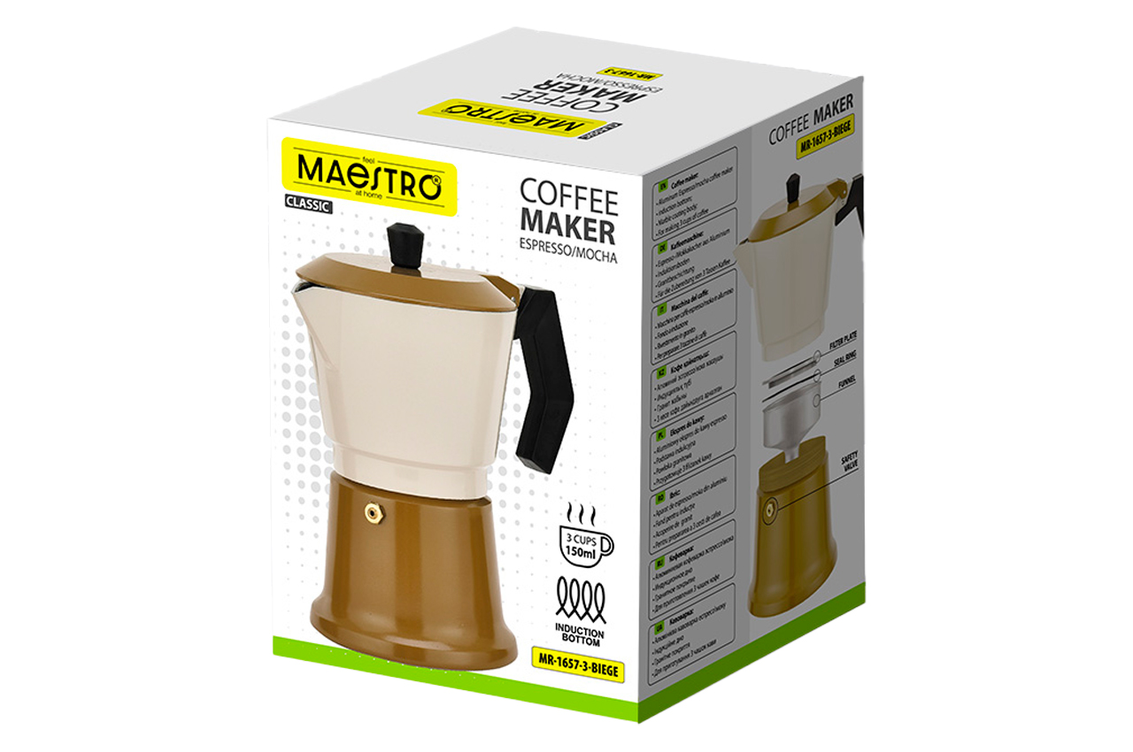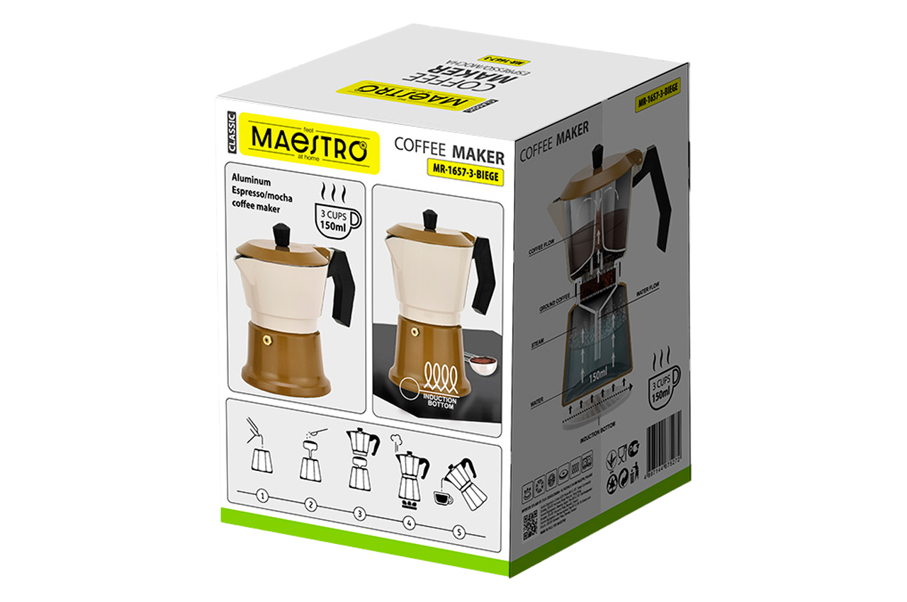 Гейзерная кофеварка Maestro MR 1657-3 черно-красного цвета предназначена для приготовления кофе как эспрессо так и мокко. Кофеварка имеет общий объем (верхний + нижний отсек) 300 мл соответствующий трем чашкам кофе эспрессо. Выход кофе за одно приготовление 150 мл!