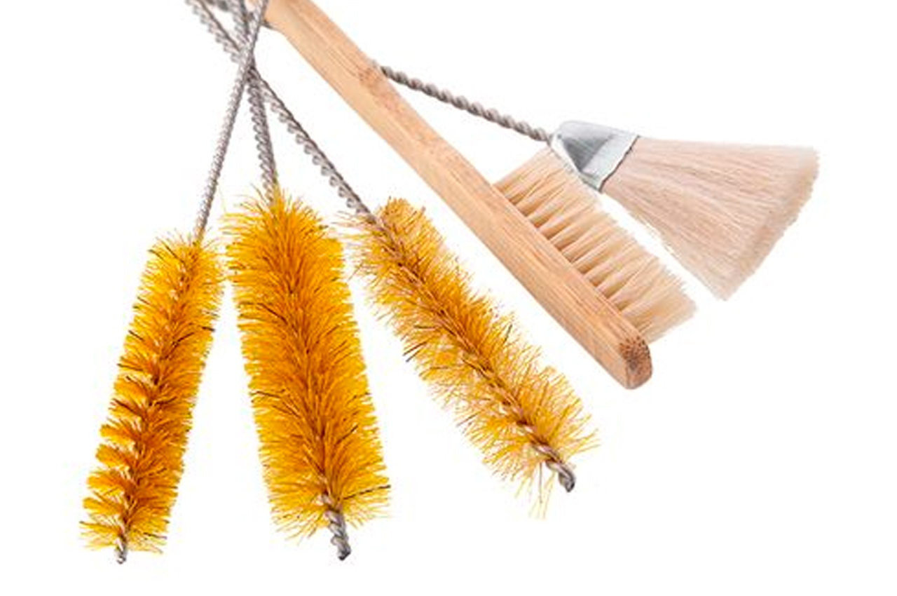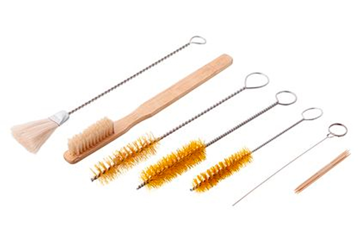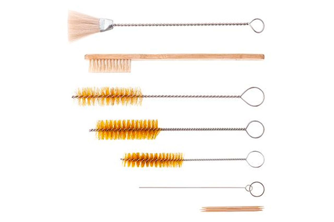 Комплект для чистки окрасочных пистолетов универсален и подходит для всех краскопультов. Он включает 12 предметов: щетки, ершики разной длины и проч.