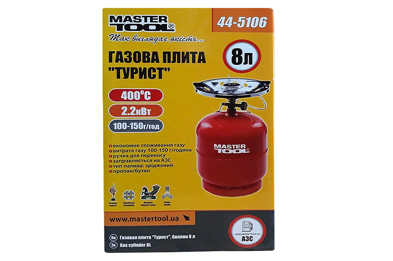 Комплект кемпинговый газовый 8 л. предназначен для бытовых целей, для туристических походов – для приготовления и разогрева пищи и т. д. Выполнен из сверхпрочного металла. Баллон заправляется автозаправками (АГЗС). Одной заправки хватает для использования горелкой несколько недель. Стоимость одного часа работы горелки в 10-15 раз ниже чем у плит и горелок с небольшими резьбовыми цанговыми баллонами-картриджами. Комплектация: газовый баллон, кран, переходник, съемная тарелка с рассекателем ручка для переноски газового комплекта. Мощность 2200 Вт; Расход топлива: 100-150 г/ч