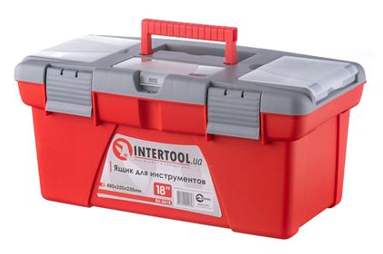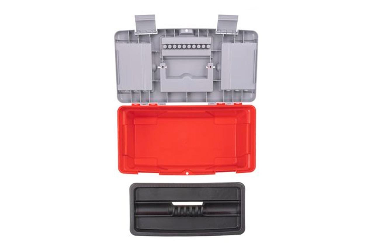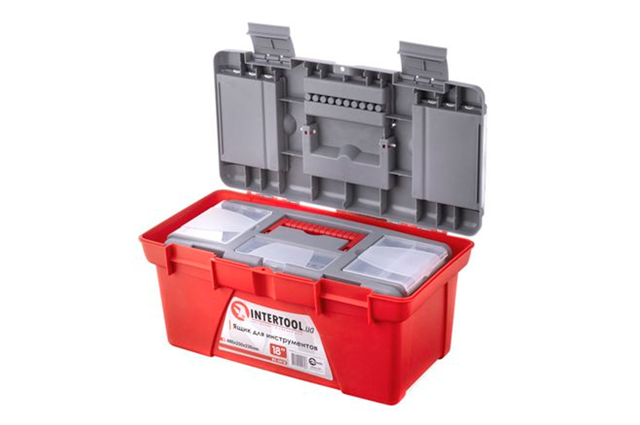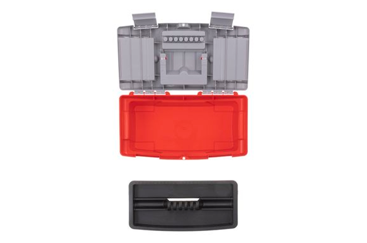 Ящики (13, 16 и 18") для хранения и безопасной транспортировки инструмента изготовлены из прочного пластика, имеют прочную ручку и устойчивы к внешним механическим воздействиям. Ящики имеют пластиковые замки и дополнительные пластиковые боксы на крышке. Два бокса - съемные, необходимы для хранения мелких деталей, расходных материалов и т.д. А третий бокс, расположенный на передней части крышке ящика имеет дополнительные отверстия для бит (отверточных насадок), головок.