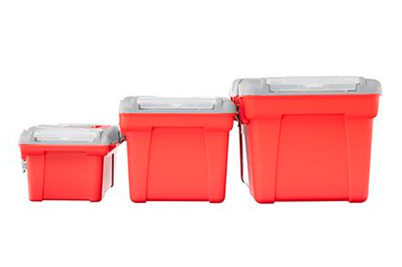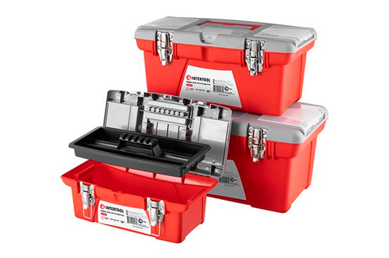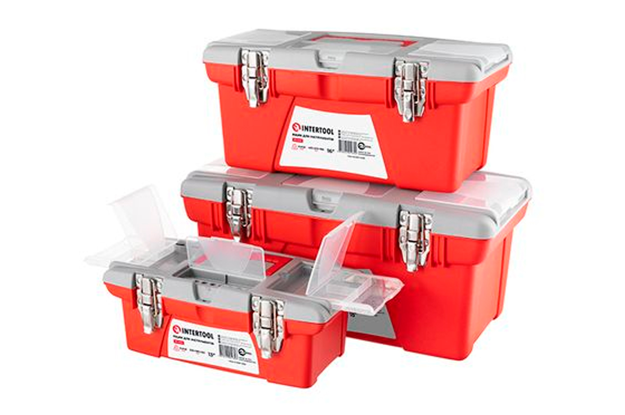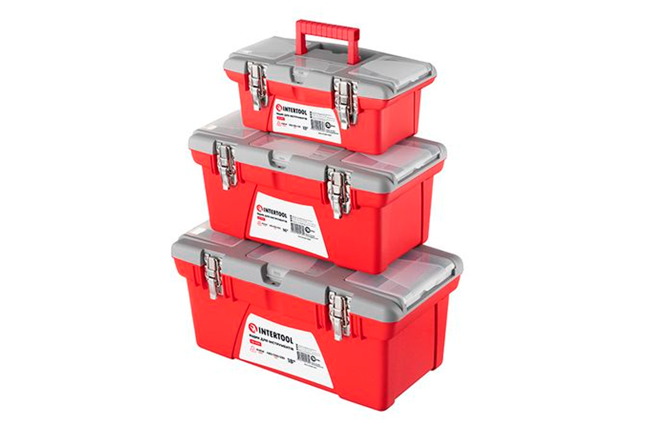 Комплект ящиков (13,16 и 18") с металлическими замками. Прочный пластик, металлические замки. Комплект ящиков для инструмента отличается от других ящиков более яркими тонами двухцветного корпуса. У всех ящиков, входящих в комплект, по два металлических замка. Это придает корпусу ящика большую жесткость, при максимальной загруженности и надежность, при его транспортировке. Идеальный вариант для хранения и транспортировки большого количества инструмента.