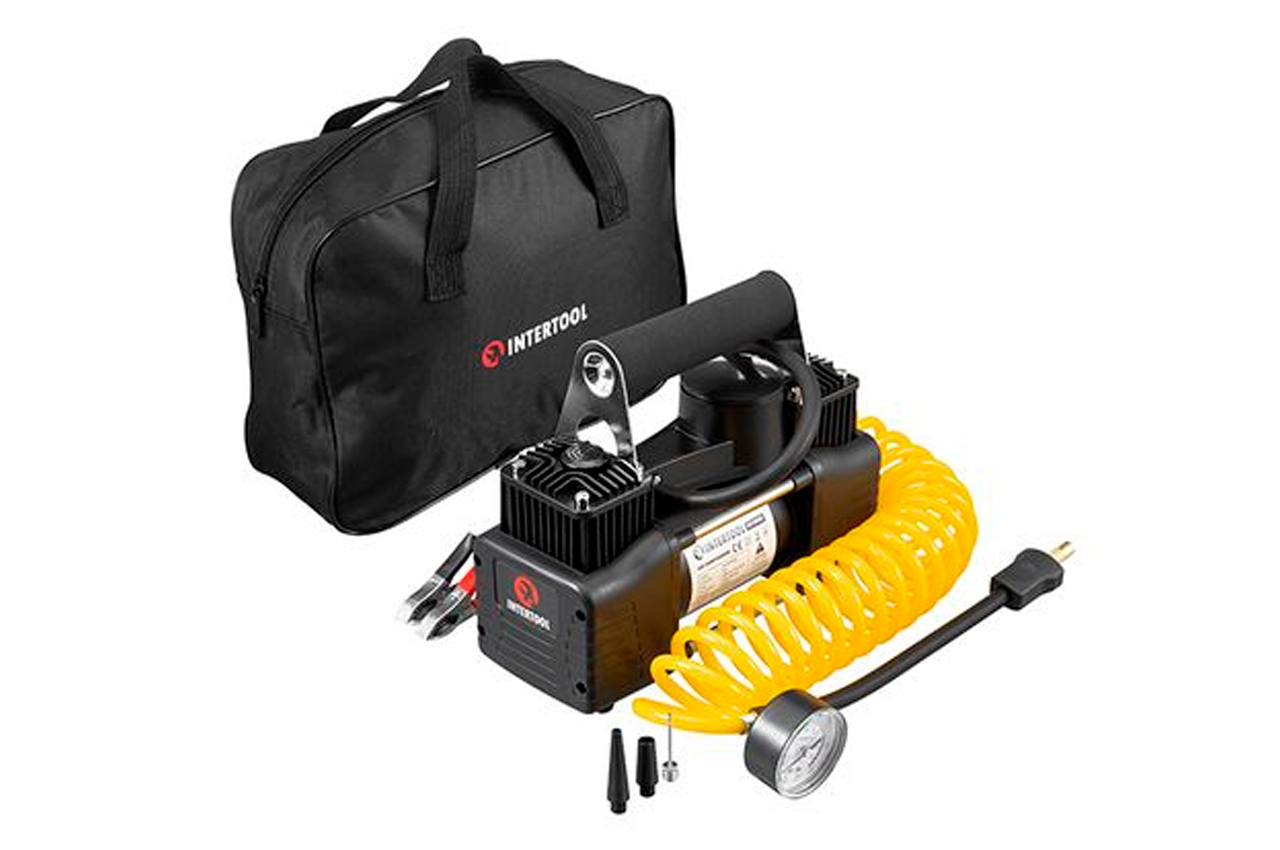 Автомобильный компрессор INTERTOOL AC-0005 — это надёжное двухцилиндровое устройство с повышенной производительностью, предназначенное для быстрой и безопасной накачки шин. Максимальное давление 10 бар, скорость нагнетания воздуха 85 л/мин на выходе, что позволяет эффективно выполнять различные задачи. Например, накачать колесо R13 до 2 бар компрессор сможет за 1-2 минуты. Компрессор очень скромных габаритов, поэтому вместе с комплектом и сумкой поместиться даже в самых компактных багажниках.