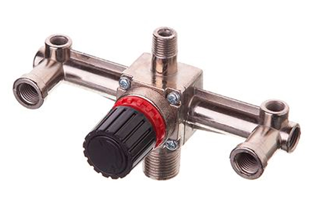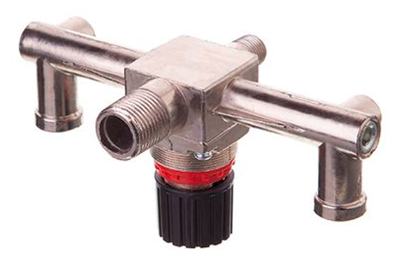 Контрольно-распределительный блок монтируется к ресиверу компрессора. Чаще всего блок подключают к устройству, которое применяется в бытовых, а не в специализированных промышленных потребностях. Подходит для резьбы 1/4". К нему можно также подключить быстросъемные соединения и автоматику. Диаметр резьбы: под компрессор - наружная 1/2"; Резьба: внутренняя под быстроразъемное соединение 1/4"