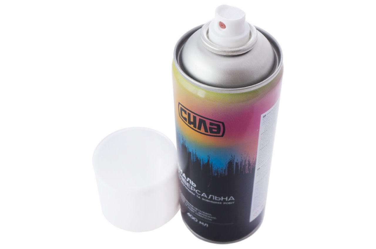 Краска аэрозольная Сила - 400 мл RAL 9010 белая для окраски металлических, бетонных, гипсовых, деревянных, стеклянных и других поверхностей. Удобная для работы с трафаретами. Образует прочное глянцевое покрытие, устойчивое к механическим и атмосферным воздействиям. Не выцветает на солнце и не теряет блеска. Для наружных и внутренних работ.