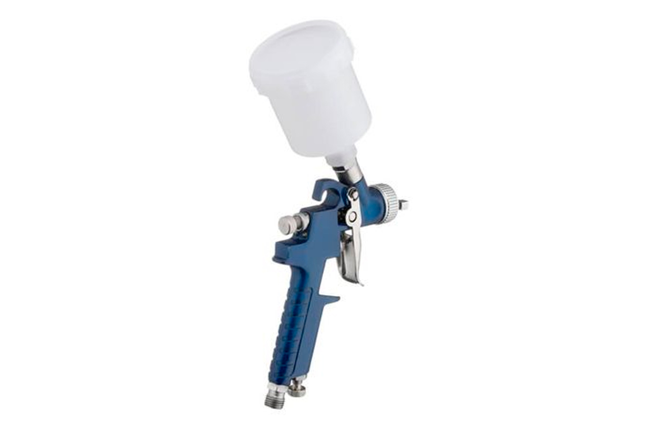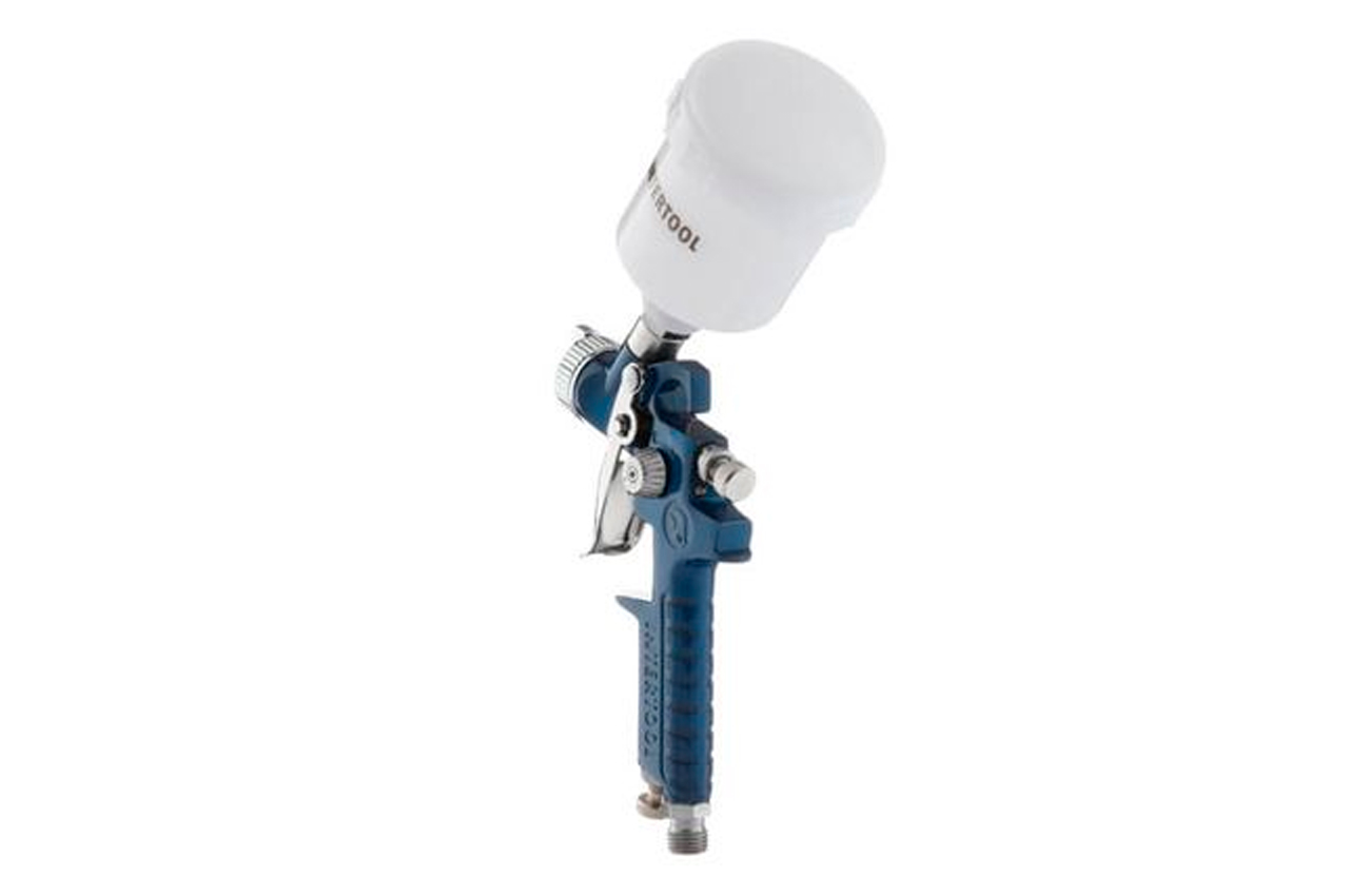 Краскопульт РТ-0121 используется для окрашивания небольших поверхностей, тонировки, аэрографии, художественного лакирования. Краскопульт создан по технологии HVLP (Низкое давление с большим расходом воздуха), благодаря чему достигается 75% эффективность переноса ЛКМ на окрашиваемую поверхность и экономно расходуются дорогие материалы. Данный краскопульт может использоваться с большинством видов ЛКМ. Расположение пластикового бачка ёмкостью 125 мл — верхнее. При рабочем давлении до 3 атмосфер расход воздуха не превышает 230 л/мин. Форсунка диаметром 1,0 мм дает возможность распыления материала плоским или овальным факелом. Особенности За счет высокого коэффициента переноса ЛКМ на поверхность значительно снижаются потери на туманообразование; Плоский и овальный факел; Подходит для большинства видов ЛКМ; Компактный, эргономичный корпус позволяет оптимально использовать все возможности инструмента и обеспечивает максимальный комфорт работы; Бачок сделан из высококачественного пластика, что обеспечивает долговременность эксплуатации инструмента и простоту в его обслуживании. Рабочее давление: до 3 атм; Диаметр форсунки: 1,0 мм; Расход воздуха: до 230 л/мин; Расположение бачка: верхнее; Объем бачка: 125 мл; Материал бачка: пластик; Диаметр шланга: 6-8 мм; Входное воздушное отверстие: 1/4"
