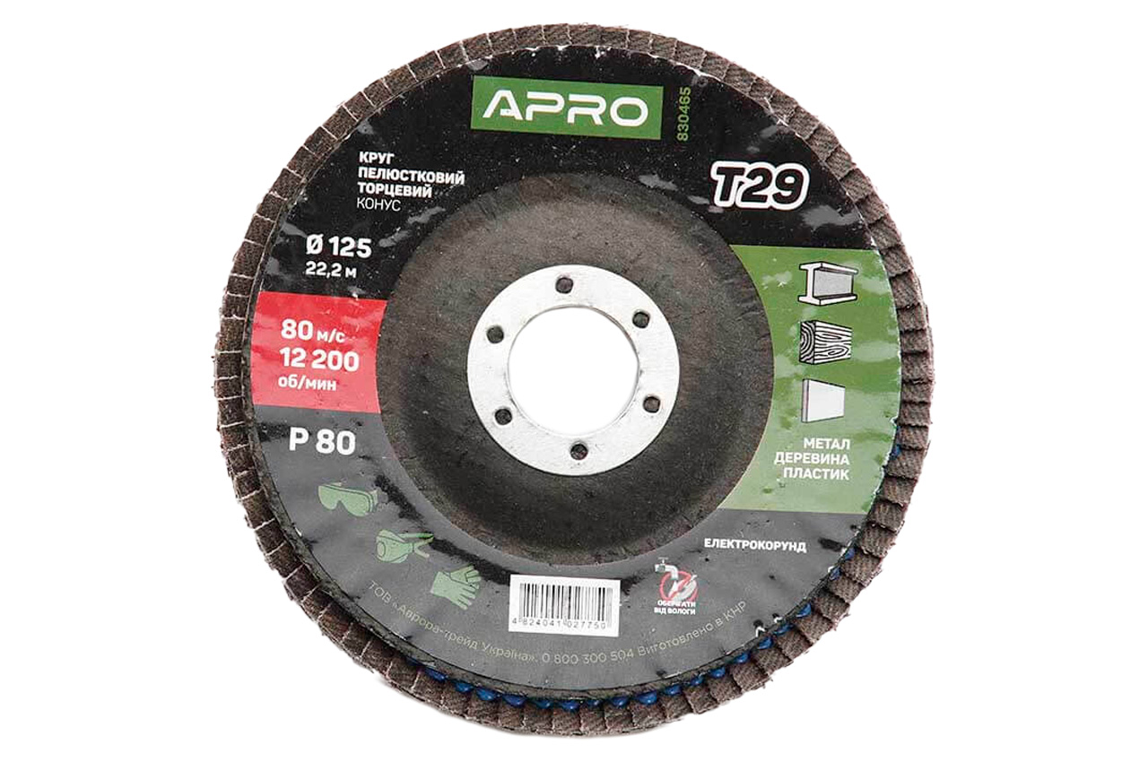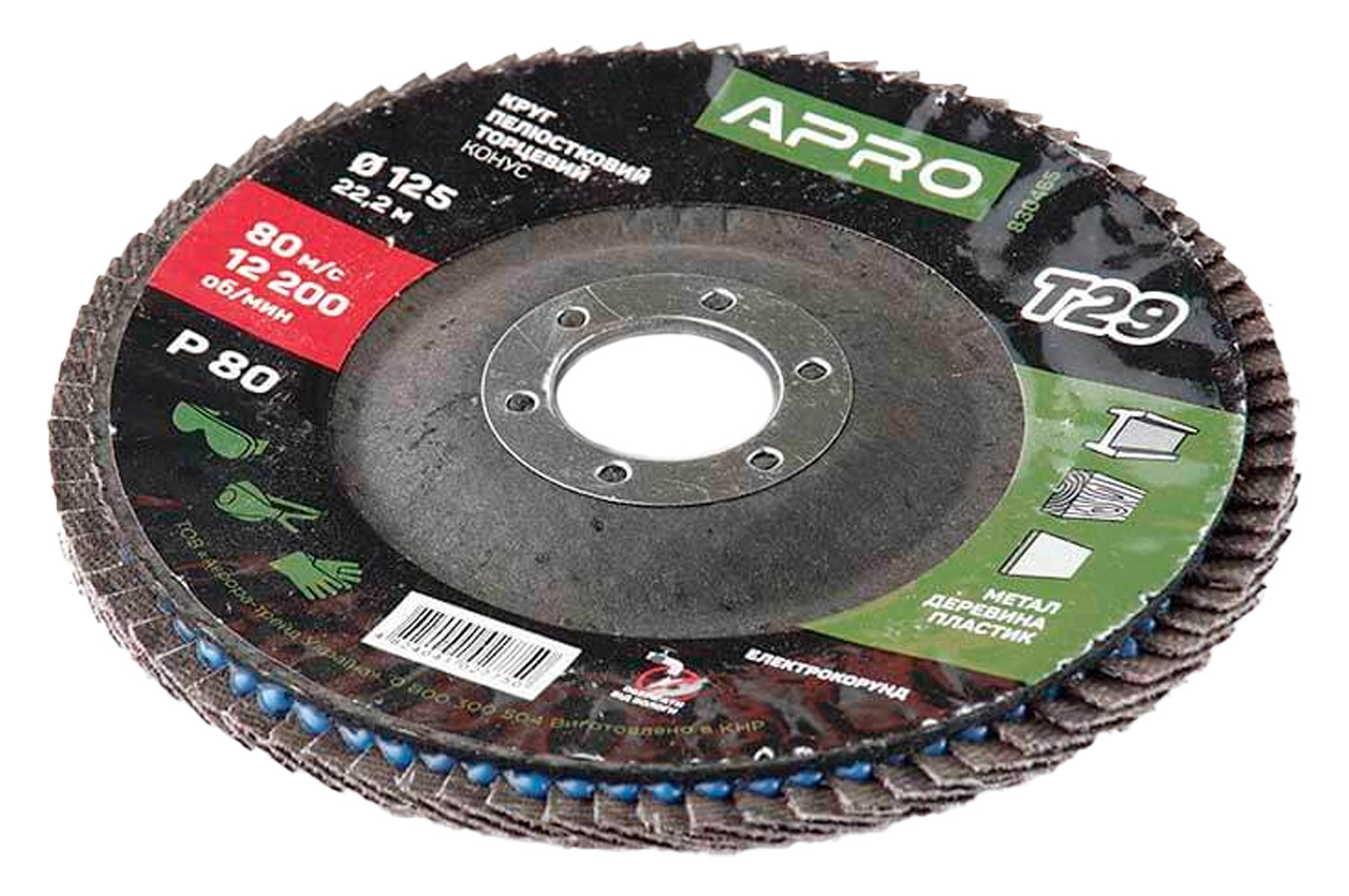 Круг лепестковый торцевой Apro - 125 мм x Р80 изогнутый