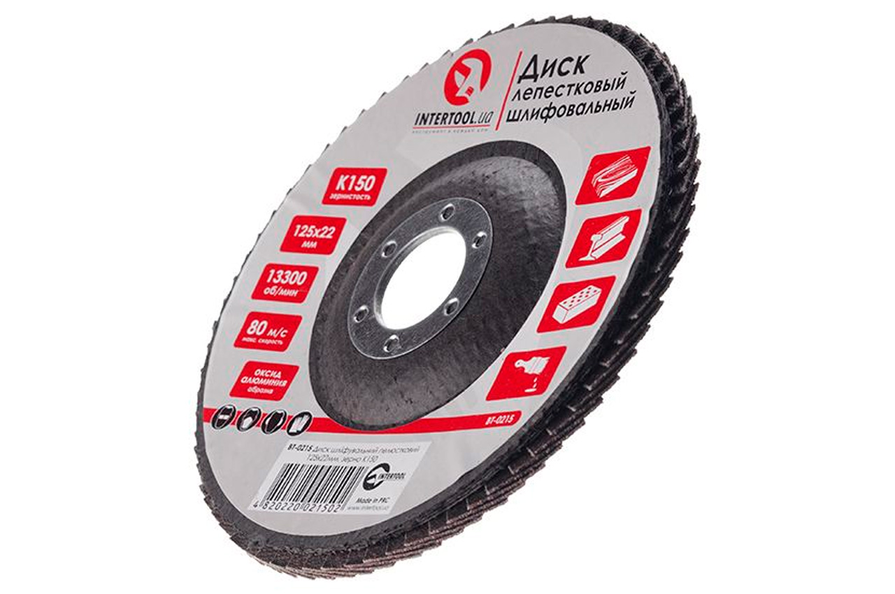 Диск шлифовальный лепестковый торцевой "Intertool" подходит для применения с УШМ. Используется в работах по шлифованию и полировке изделий из металла, стали, бетона, сухого дерева, лака/краски. Обеспечивает низкий уровень шума. Абразивное зерно: оксид алюминия. Диаметр круга 125мм.