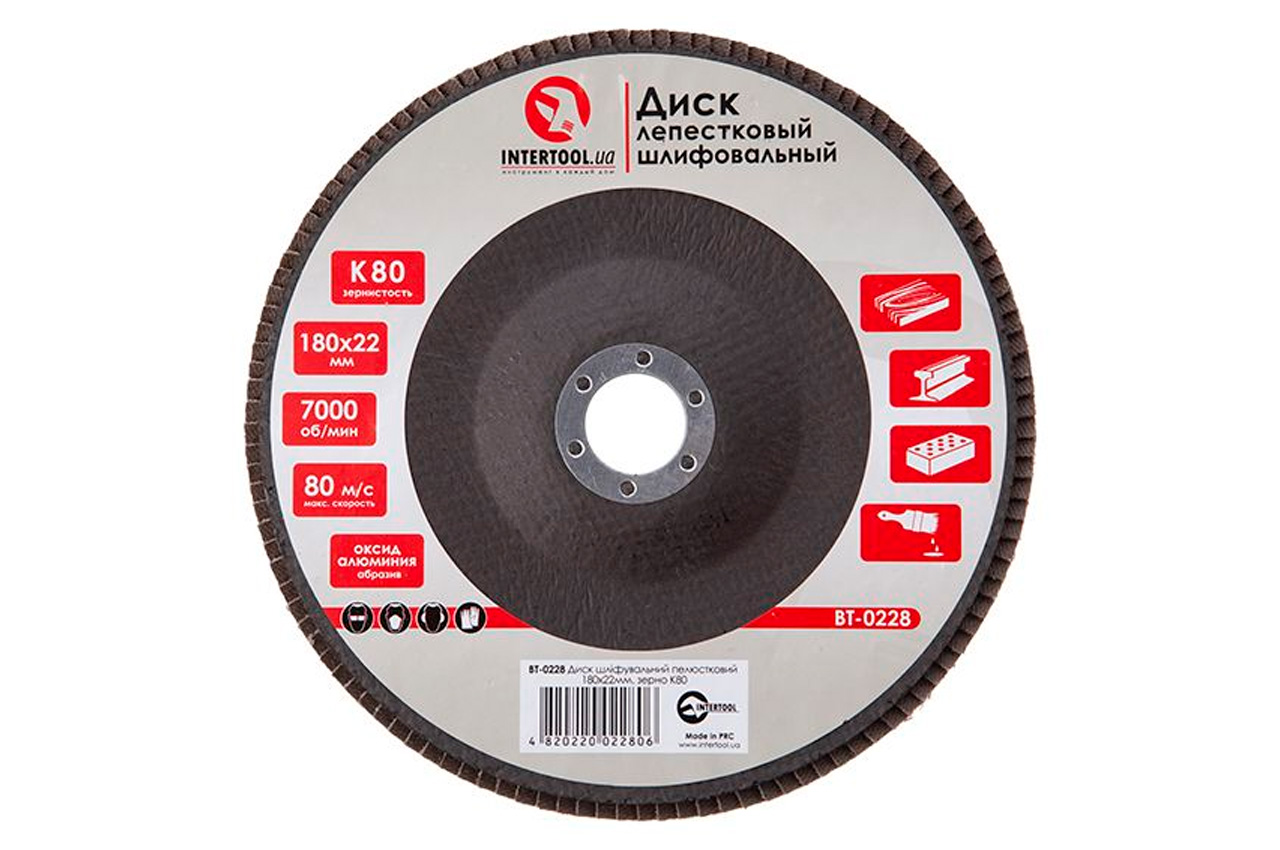 Круг лепестковый торцевой Intertool - 180 мм Р80