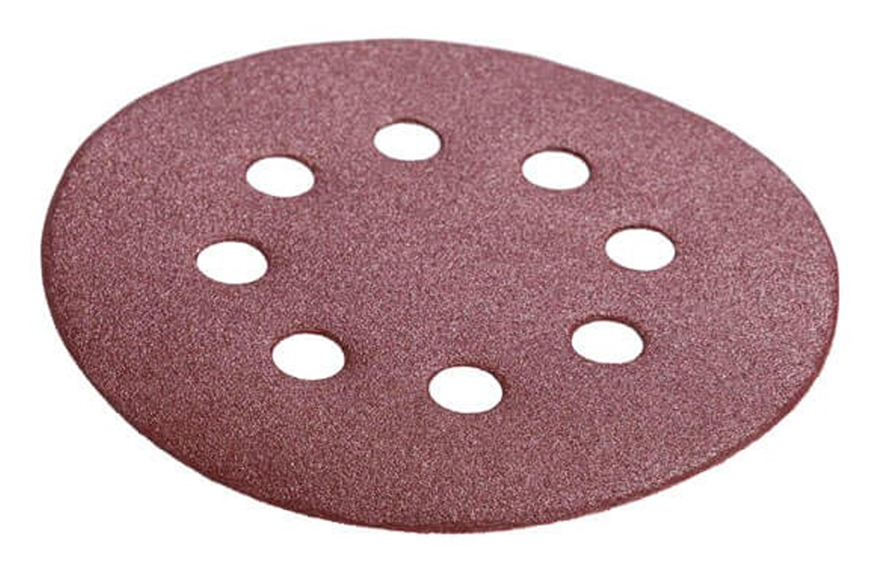 Круг наждачный самоклеющийся с отверстиями применяется для работ с шлифмашинами, в частности с эксцентриковыми шлифмашинками. Используется для зачистки и финишной обработки различных поверхностей: дерева, металла, камня, пластмассы, стекла и др. Подходит также для обработки краски, лака, шпатлевки, пластика. Круги с зернистостью от 150 до 600 для финальной шлифовки и полировки под покраску. Используемые материалы: основа - бумага класса С, плотность 140 г/кв.м².; шлифовальное зерно - оксид алюминия; соединитель - фенольная смола; материал сцепления - велюр; полуоткрытая насыпка.