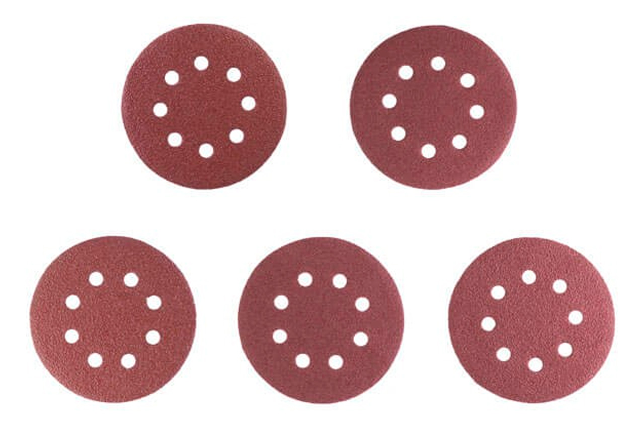 Круг наждачный самоклеющийся с отверстиями применяется для работ с шлифмашинами, в частности с эксцентриковыми шлифмашинками. Используется для зачистки и финишной обработки различных поверхностей: дерева, металла, камня, пластмассы, стекла и др. Подходит также для обработки краски, лака, шпатлевки, пластика. Круги с зернистостью от 36 до 40 применяются для чернового шлифования поверхности. Используемые материалы: основа - бумага класса С, плотность 140 г/м²; шлифовальное зерно - оксид алюминия; соединитель - фенольная смола; материал сцепления - велюр; полуоткрытая насыпка.