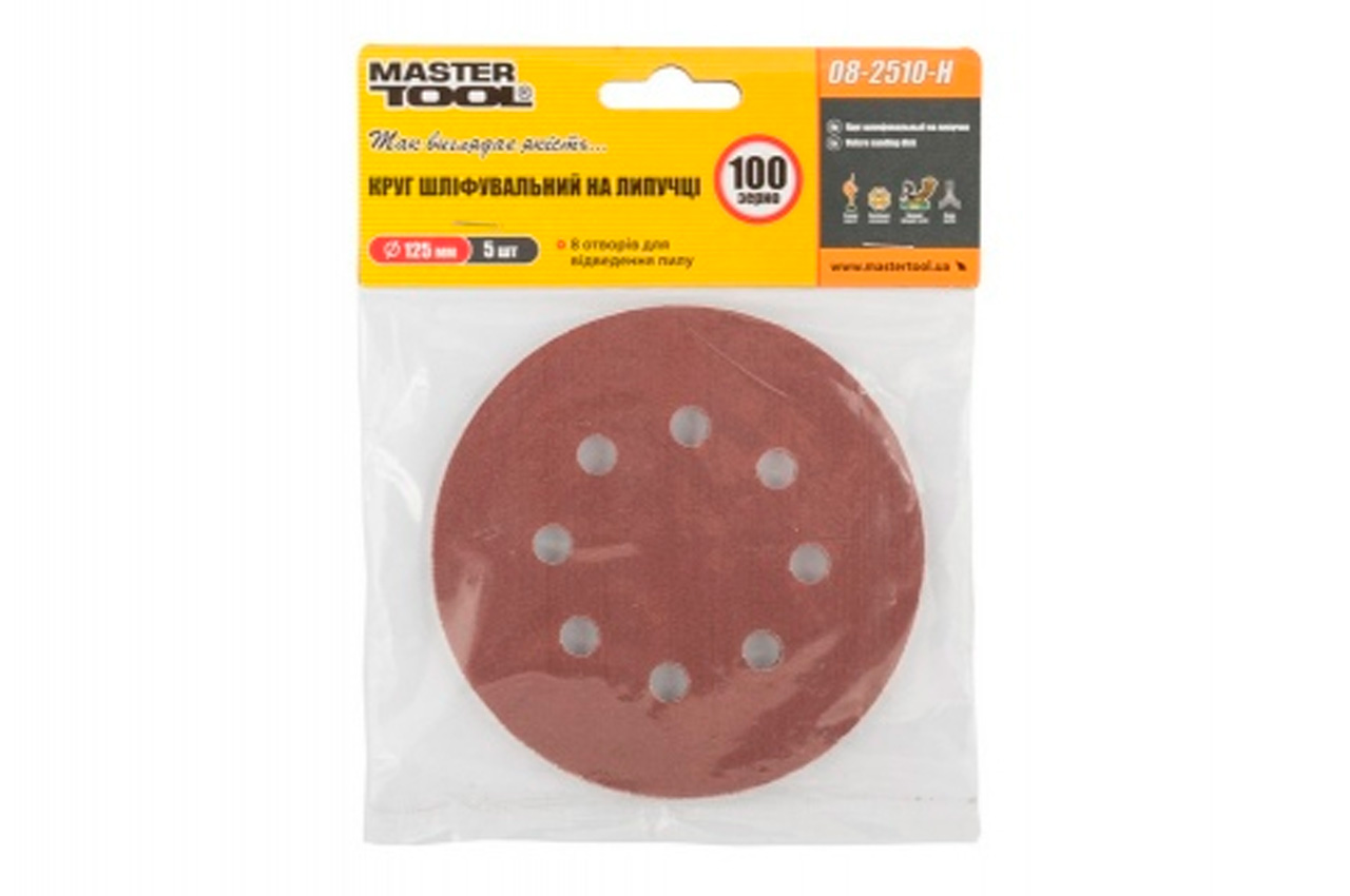 Круг шлифовальный на липучке Mastertool - 125 мм x Р100 с отверстиями (5 шт.)
