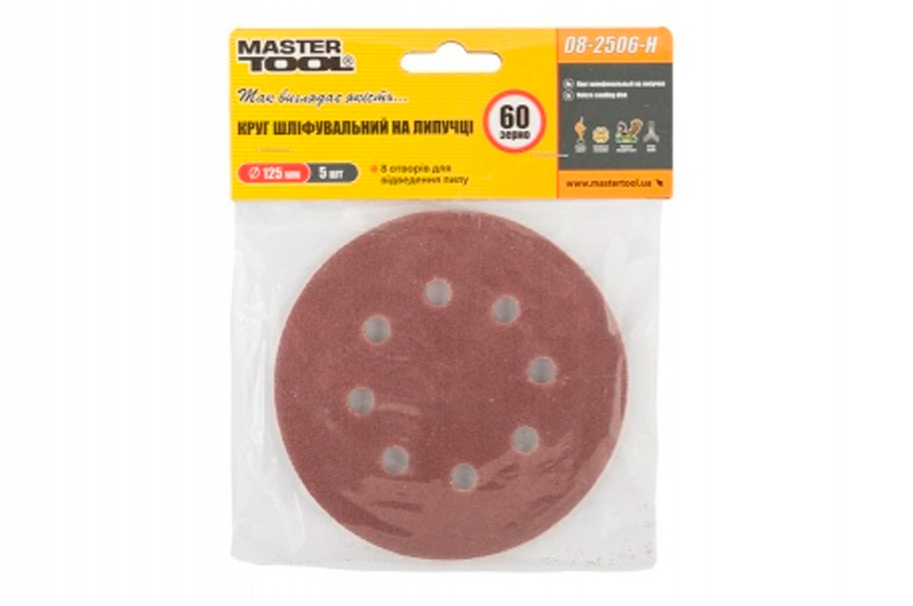 Круг шлифовальный на липучке Mastertool - 125 мм x Р60 с отверстиями (5 шт.)