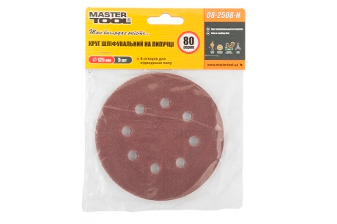 Круг шлифовальный на липучке Mastertool - 125 мм x Р80 с отверстиями (5 шт.)