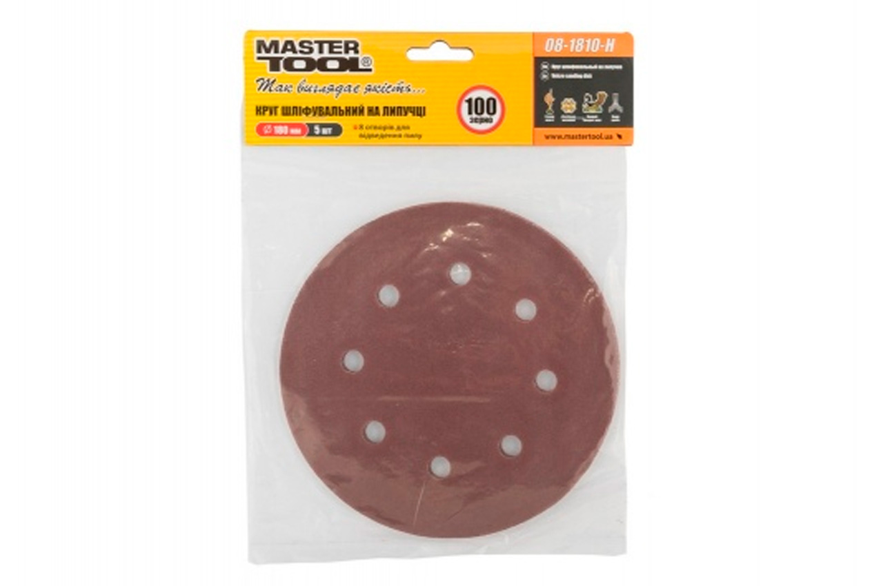 Круг шлифовальный на липучке Mastertool - 180 мм x Р100 с отверстиями (5 шт.)