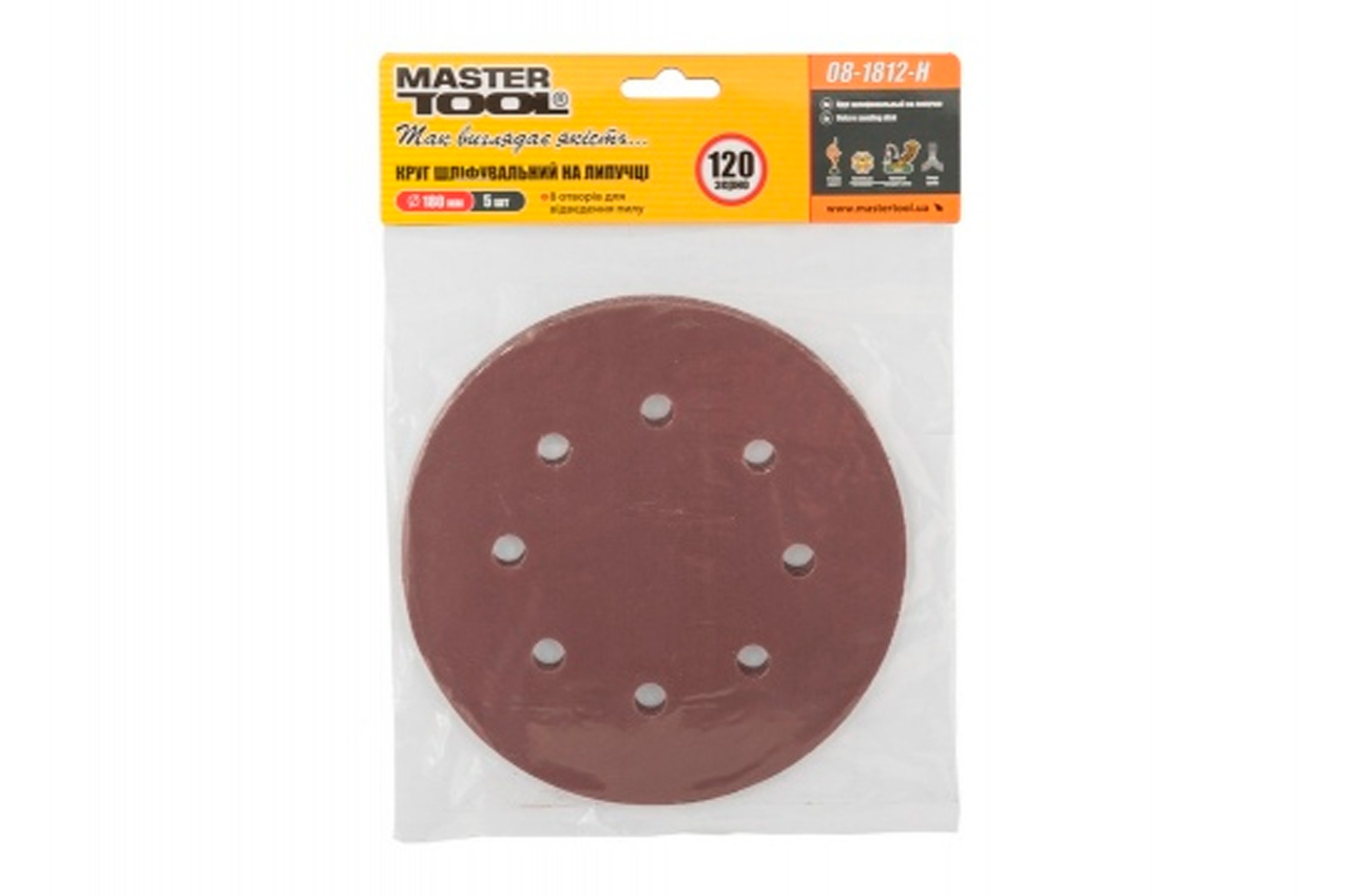 Круг шлифовальный на липучке Mastertool - 180 мм x Р120 с отверстиями (5 шт.)