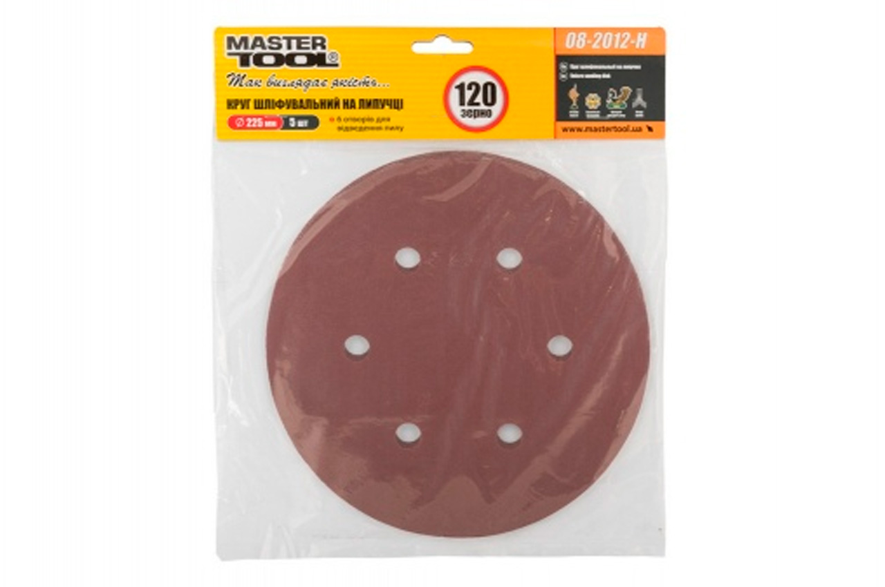 Круг шлифовальный на липучке Mastertool - 225 мм x Р120 с отверстиями (5 шт.)