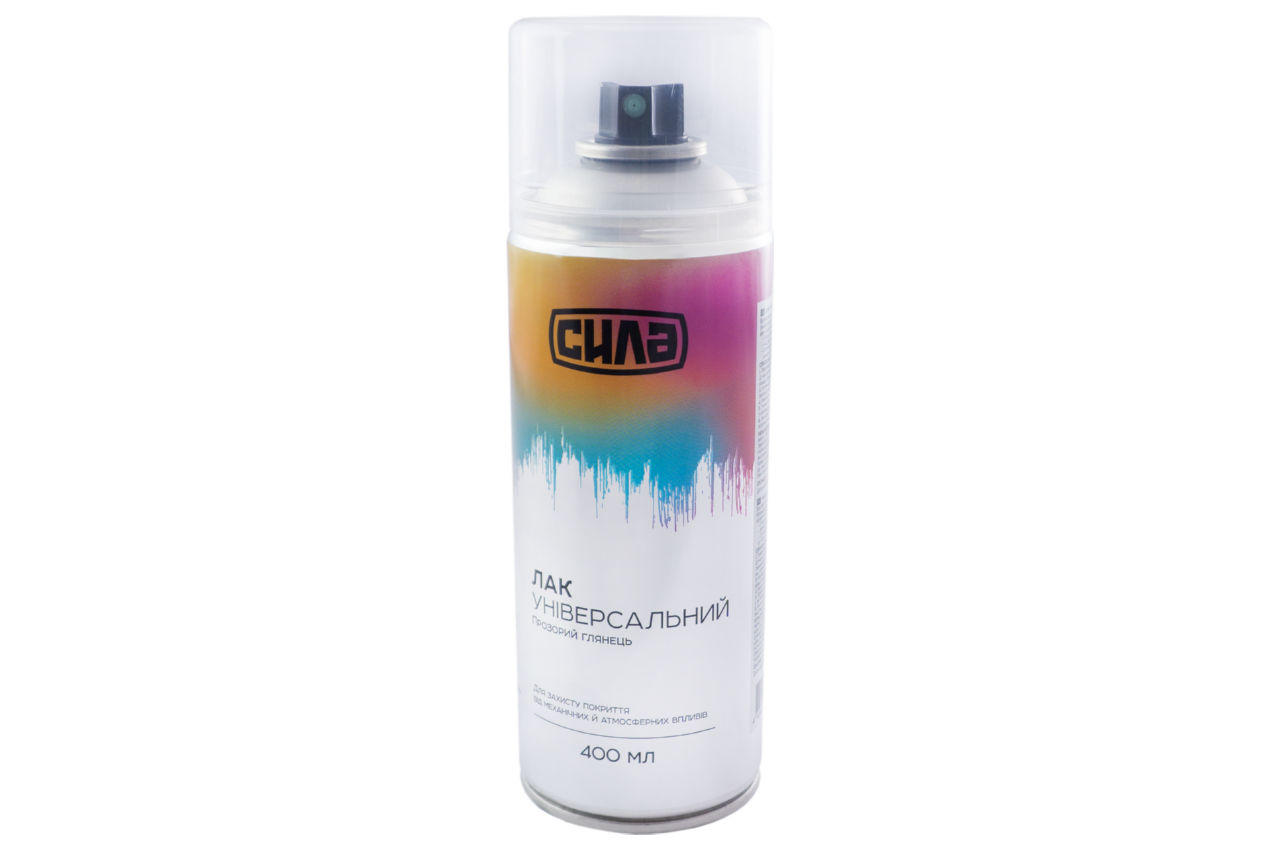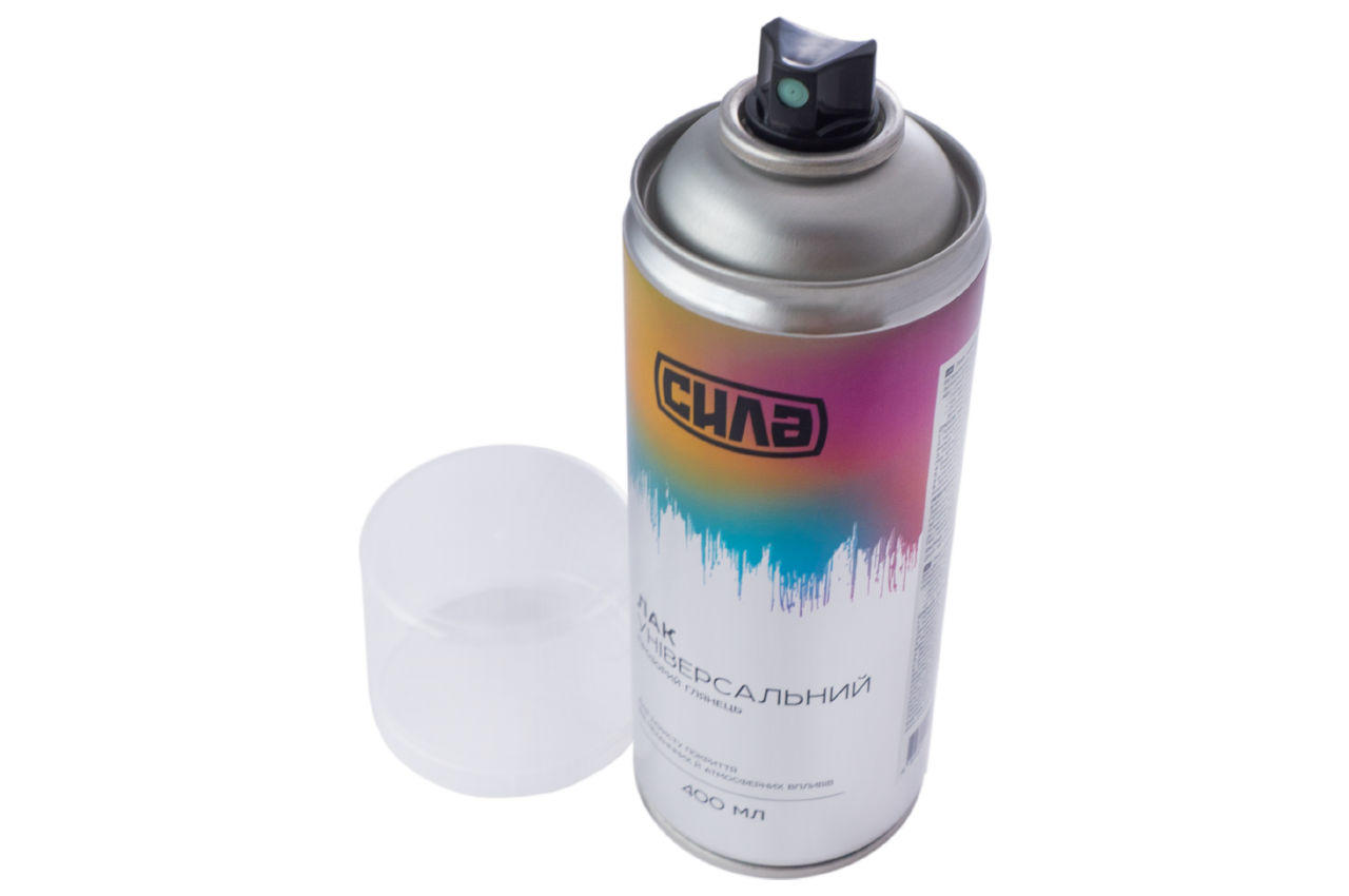 Лак аэрозольный Сила – 400 мл бесцветный. Бесцветный лак для защиты покрытий от механических и атмосферных воздействий. Повышает защитные свойства и увеличивает глубину цвета. Наносится на окрашенную поверхность или самостоятельно. Для наружных и внутренних работ. Площадь покрытия (в зависимости от толщины слоя): 1,0–1,5 м2. Время высыхания: 7-10 мин при температуре +25 °С. °С