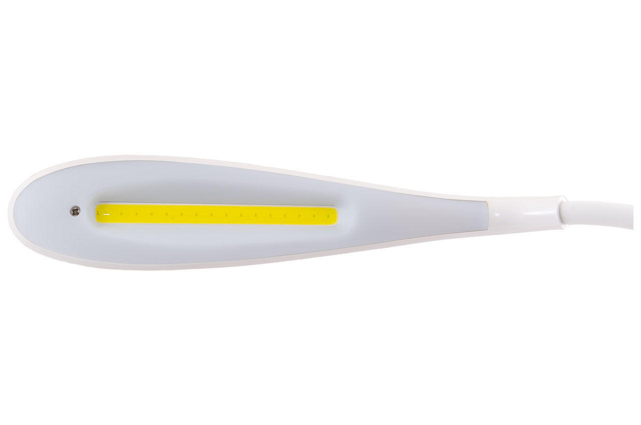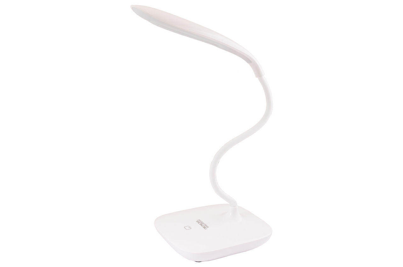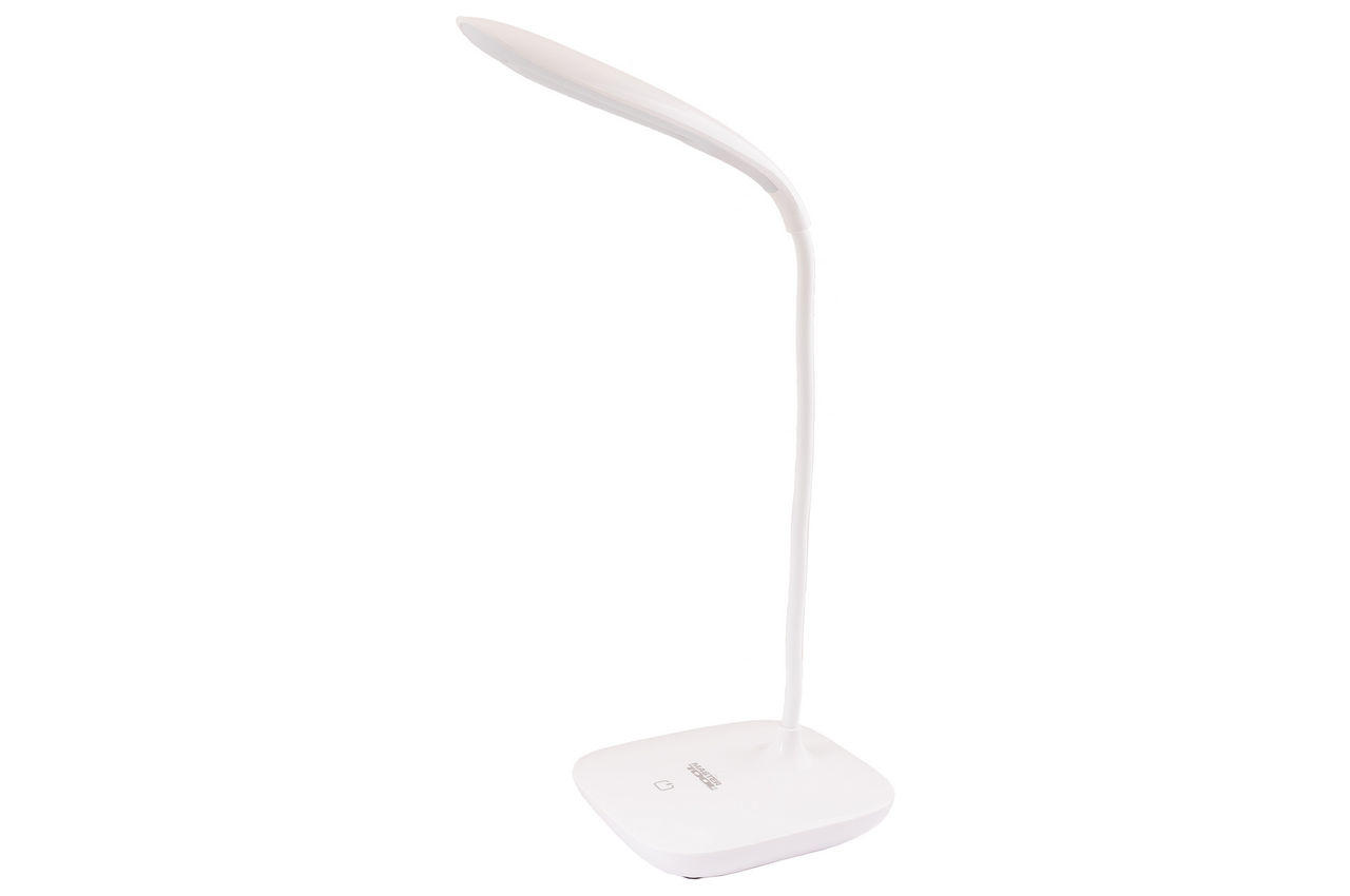 Яркий светодиод мощностью 3W, технология COB LED световой поток 150 lumen 3 режима работы яркости света: - 100% - 50% - 30% гибкая стойка лампы позволяет регулировать угол наклона света корпус изготовлен из противоударного пластика сенсор тип питания: 3 батарейки AA, USB выход, или от сети.