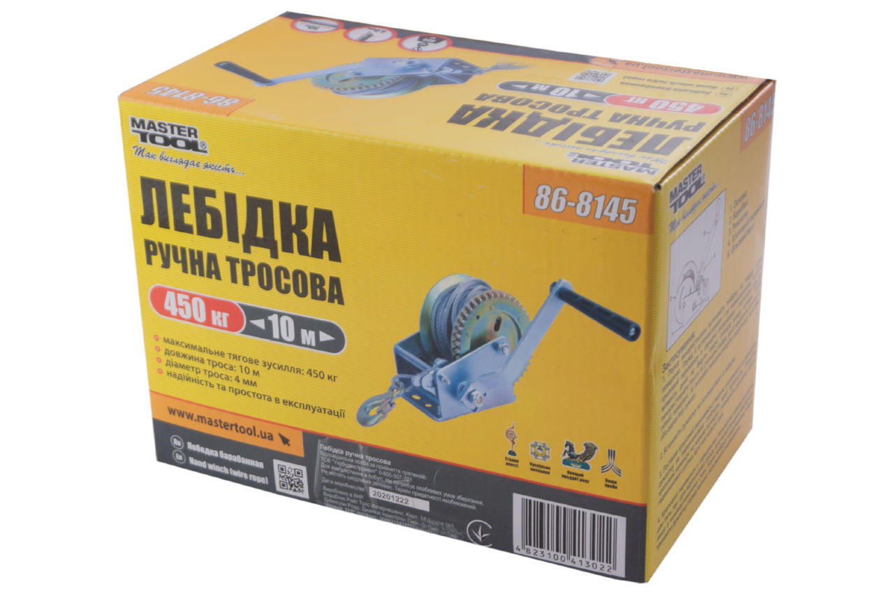 Лебедка барабанная Mastertool - 450 кг x 10 м трос