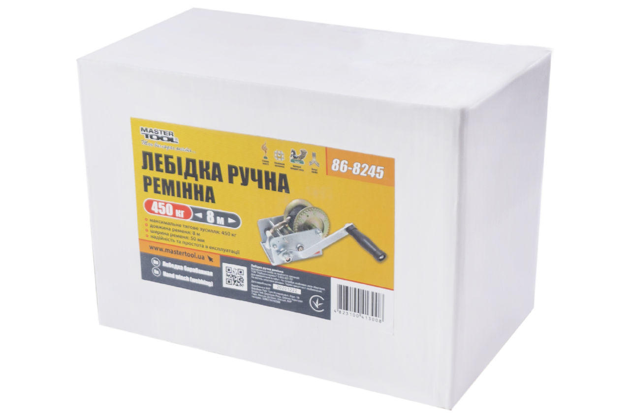 Лебедка барабанная Mastertool - 450 кг x 8 м ремень
